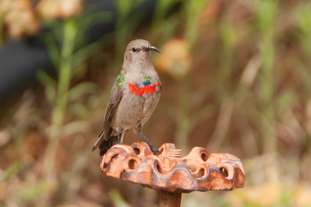 Southern Double-collared SunbirdOverhead White-rumped Swifts and Greater-striped Swallows competed for flying insects. Exiting the gardens, a winding road took me up the hill to Brandwacht which is mainly vineyards with large farm dams, the latter quite productive around the fringes with the likes of Yellow bishop, Common Waxbill, Stonechat and Familiar Chat helping to boost the pentad list to 43 for the 2-3 hours spent atlasing.