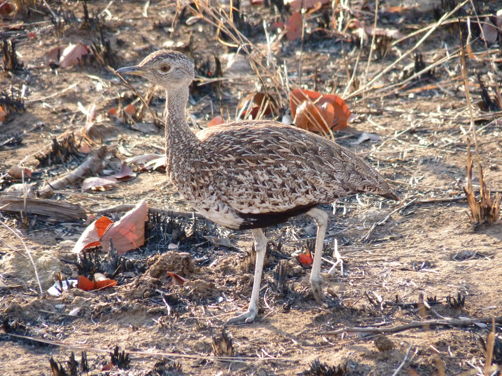 Along the same stretch we spotted two well-camouflaged terrestrial bird species – Double-banded Sandgrouse and a Red-crested Korhaan, both close to the road and quite confiding. Both have colouring that blends in with the surrounding bush and soil, particularly in winter.