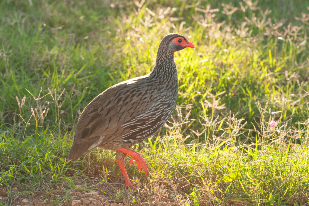 Back at Addo there was time to relax before doing a last drive along the route where most of the dams and waterholes are and we came across numbers of game as well as a few new ‘trip birds’ such as Southern Tchagra, as always skulking in the bushes, and a far more brazen pair of Red-necked Spurfowl, common to Addo.