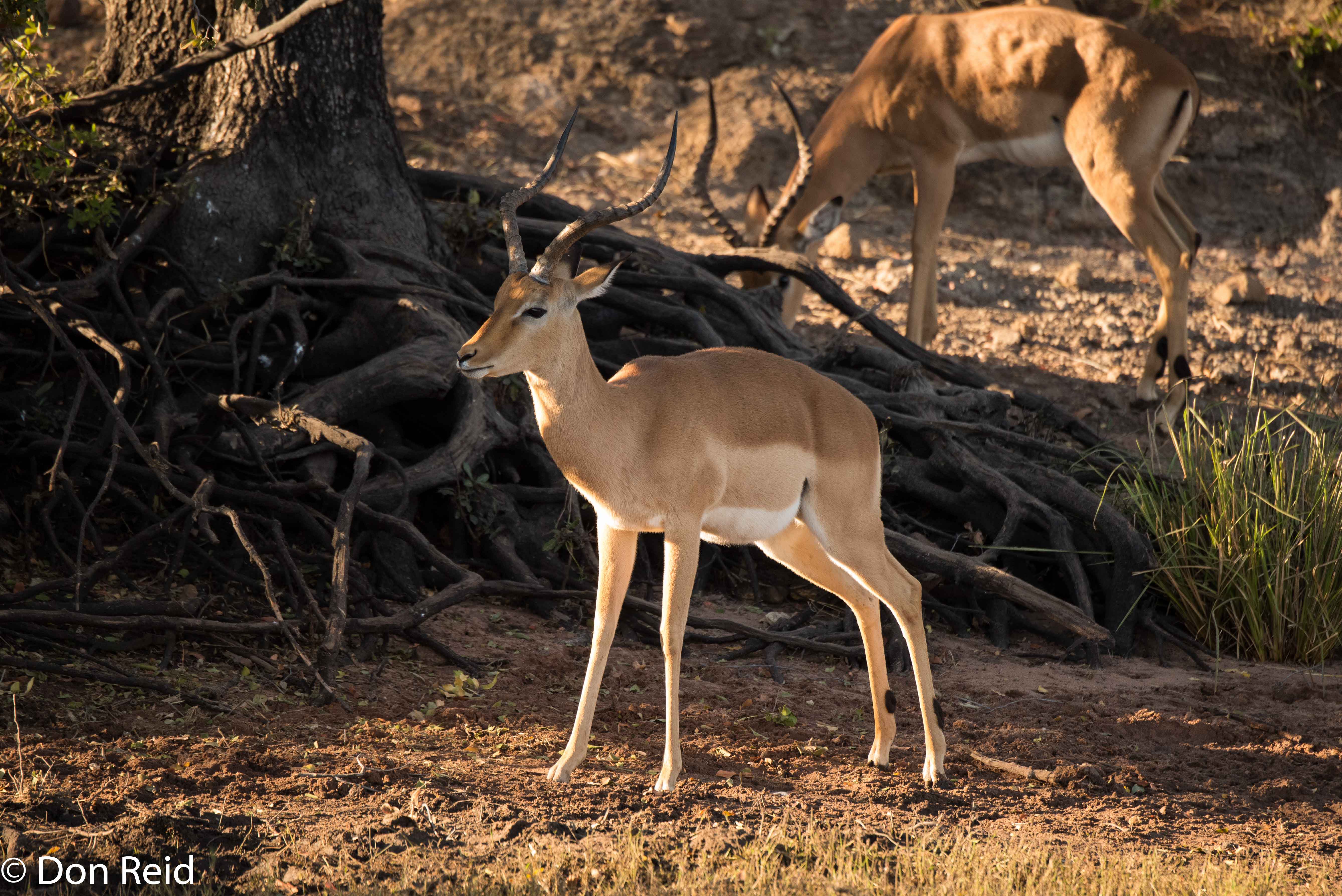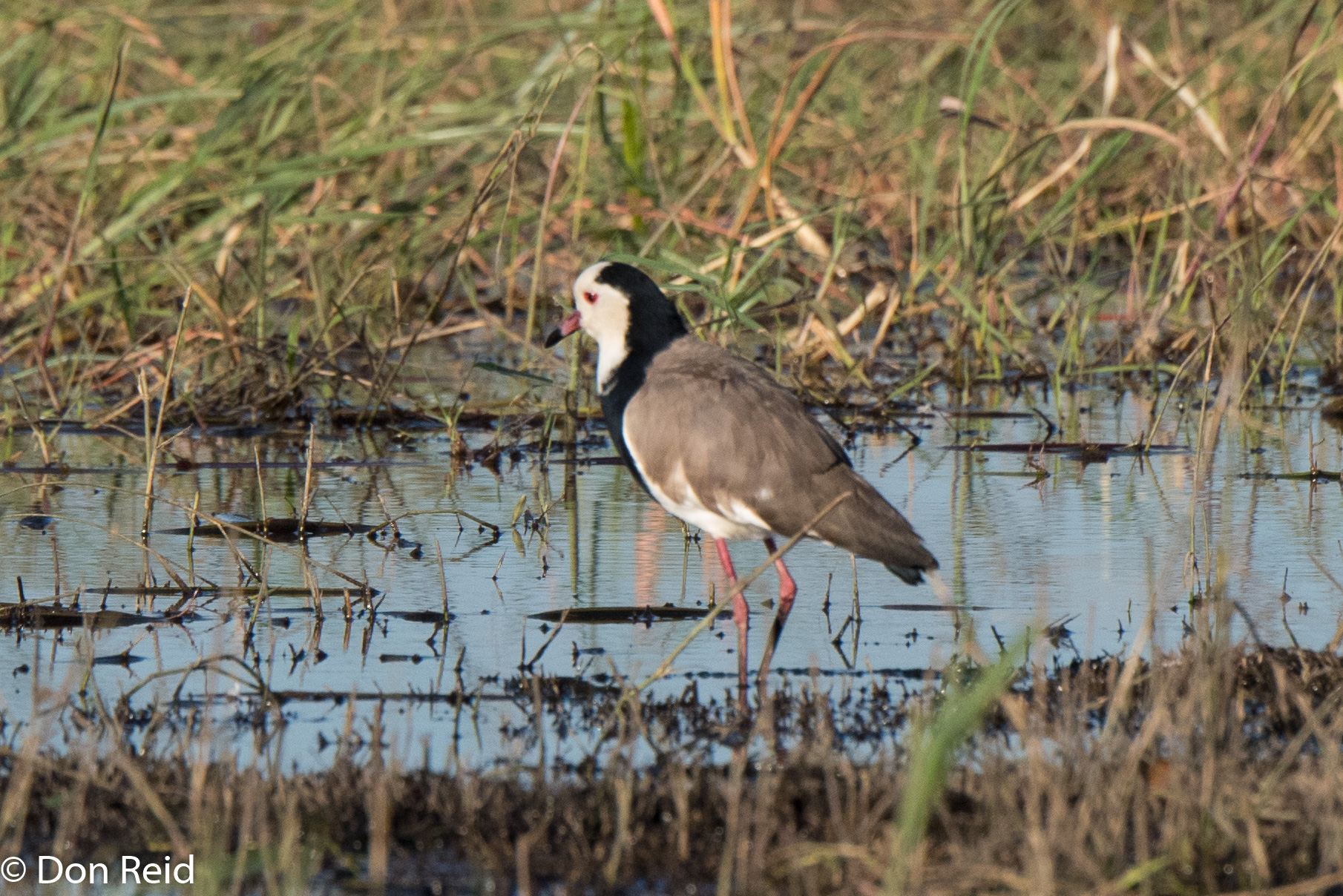 The return trip was along the main channel, by now rippled by the fresh wind which had come up, but not enough to cause any discomfort. Along the way we added Red-billed Teal and Knob-billed Ducks to our sightings as well as a lone Red Lechwe in long grass on a waterlogged plain.