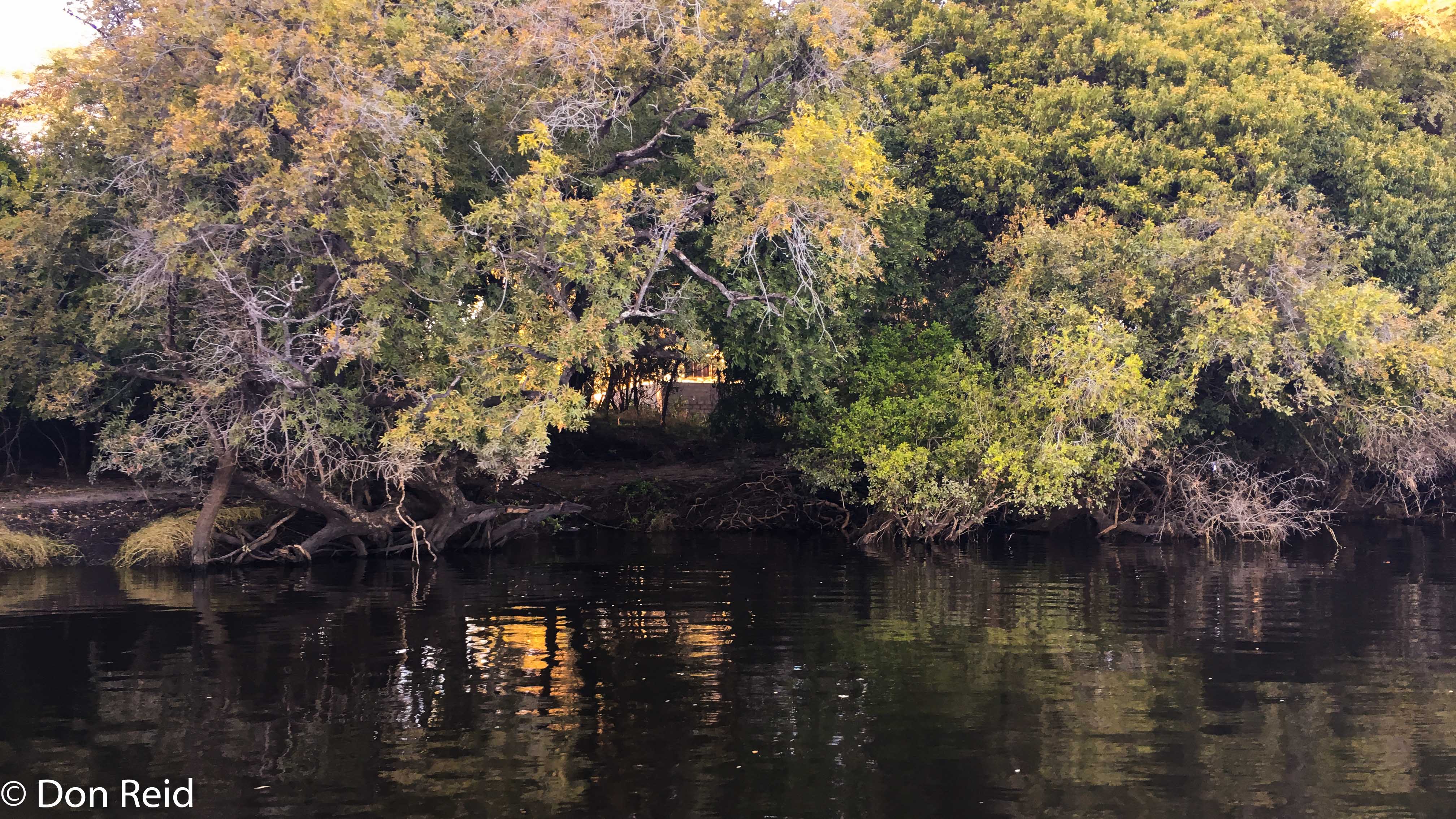 Water Thick-knees skulking in the shade of the riverside bush are particularly difficult to spot but Richard’s sharp eyes found them easily. On our way upstream we passed by some of the well-known lodges with their decks overlooking the great river.