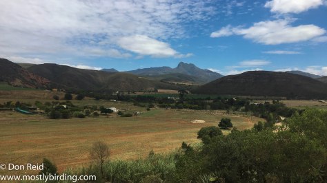 Although this pentad lies directly west of the first one, the lack of direct roads meant a longish drive via the R327 to get to the northern boundary just outside the tiny but charming Herbertsdale village. The birding was immediately lively and the views from the hill leading into the village spanned the fertile valley below, albeit suffering under the drought that has so much of the country in its grip.