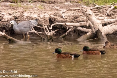 Maned Ducks (aka Australian Wood Duck, depending on which book you use) were almost as numerous but on the grassy banks. I have yet to see this latter duck actually in the water so they obviously don’t seem to understand the adage “takes to the water like a duck” for some reason.