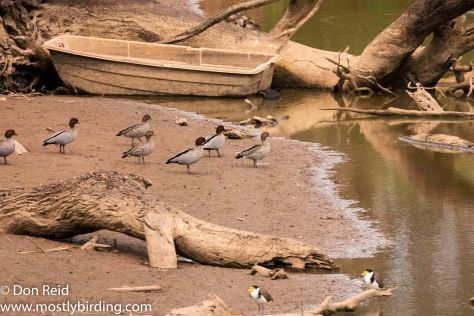 I did not see anything new on the way back but at the bridge I stopped to view the Masked Lapwings at the water’s edge, accompanied by more Maned Ducks.