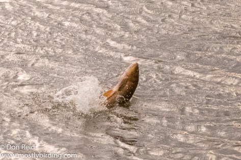 Something moved in the middle of the river and as I focused my camera on the ripples a fish leaped out and I instinctively pressed the shutter button, capturing it in mid leap – a really lucky shot! I’m not a fish expert but took this to be a trout