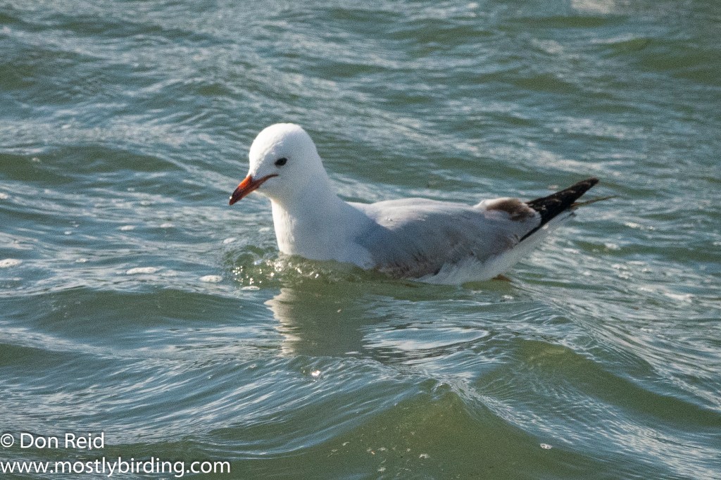The immature Silver Gull below shows a few differences from the adult – dark eyes rather than light, remnants of the juvenile brown colouring on the upper wings