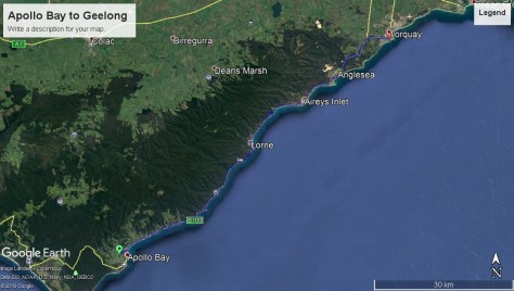 After our trip from Apollo Bay to the Twelve Apostles the previous day, we were looking forward to seeing more of the “real” Great Ocean Road and, looking at our route for the day, it showed the B100 following the coastline all the way from our starting point of Apollo Bay to Torquay then heading inland to Geelong.