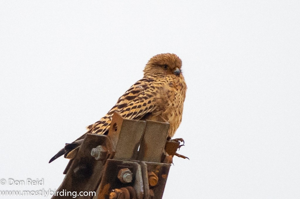 Shortly after that stop I came across a Black-winged Kite and colourful White-fronted Bee-eaters using the overhead wires as a hawking perch, after which I had to work hard for new species to record. A small raptor high up on a pylon, with strong backlight preventing a clear sighting, had me battling to decide on an ID, but my trusty Sony bridge camera on full zoom and set to over-expose by about two stops saved the day, providing a good enough image to confirm it was a Greater Kestrel (5%).