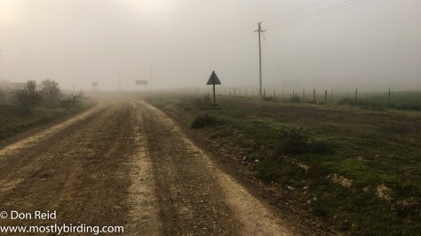 I reached the southern pentad boundary just on 8 am, with heavy mist limiting visibility. That didn’t stop a Bokmakierie from calling from a nearby tree, in fact he seemed to put extra woema (effort) into it with an outstretched neck.