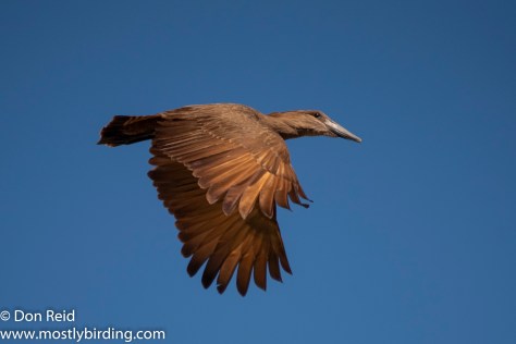 Ahead was a low-water bridge which always delivers, but when I stopped I could not see any birds. As I got out to look around a Hamerkop (14%) flew off in agitation – another uncommon bird in the area.