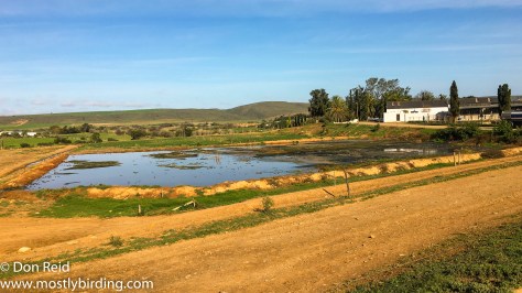 Excusing myself, I was soon back on the R327 and on the way to Herbertsdale through rolling hills and grand scenery, pausing frequently to study the surroundings. A farm dam and adjoining shallow pan was filled with ducks and waders – I counted no less than 72 Three-banded Plovers, a fairly common bird but usually seen singly or in pairs. I had never seen so many in one spot before. For those of a mathematical bent that would amount to 216 bands among all the Plovers……