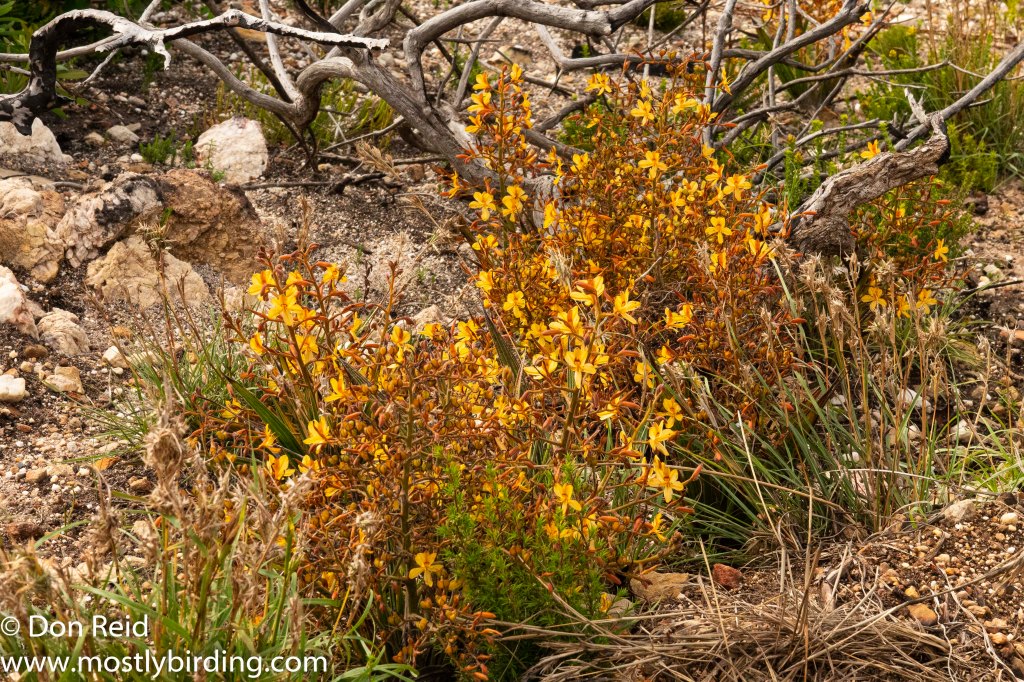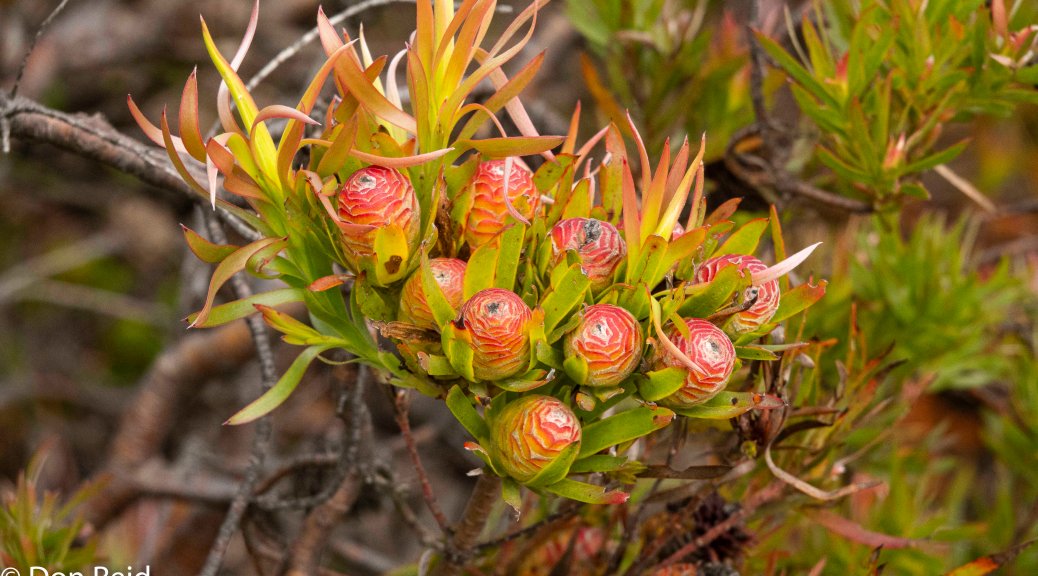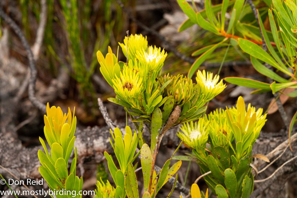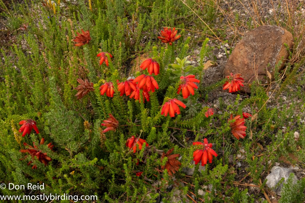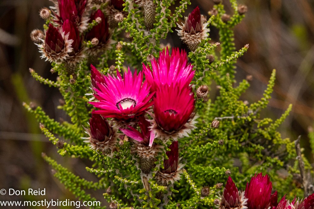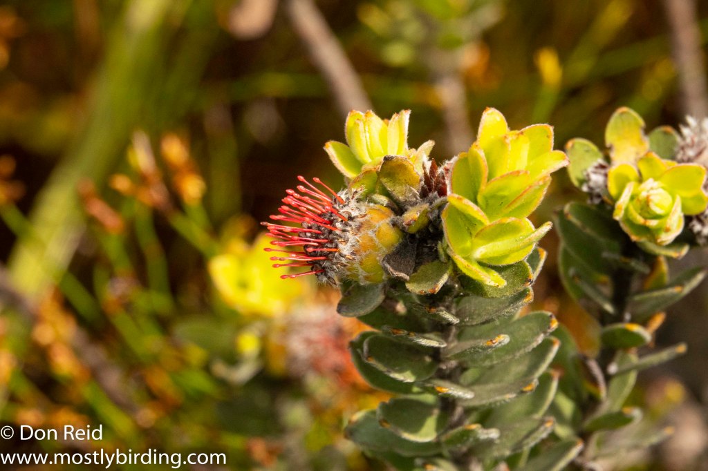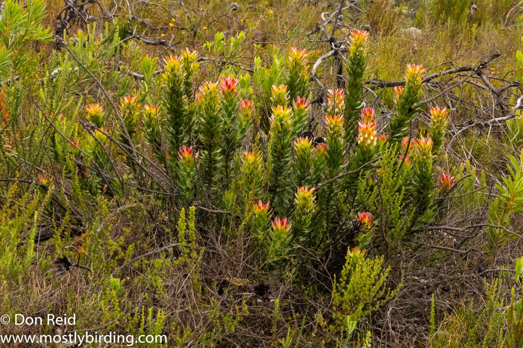 We soon realised that the drive was a perfect opportunity to get acquainted with the beautiful, delicate, flowering fynbos shrubs that lined the road higher up and we stopped frequently, under Gerda’s guidance, for closer views and photos of some of the more distinctive species. Here is a selection of the photos that I took – for the time being the flowers will have to remain nameless as our reference books on Fynbos remained behind in Mossel Bay when we returned to Pretoria (well, that’s my excuse and I’m sticking to it}