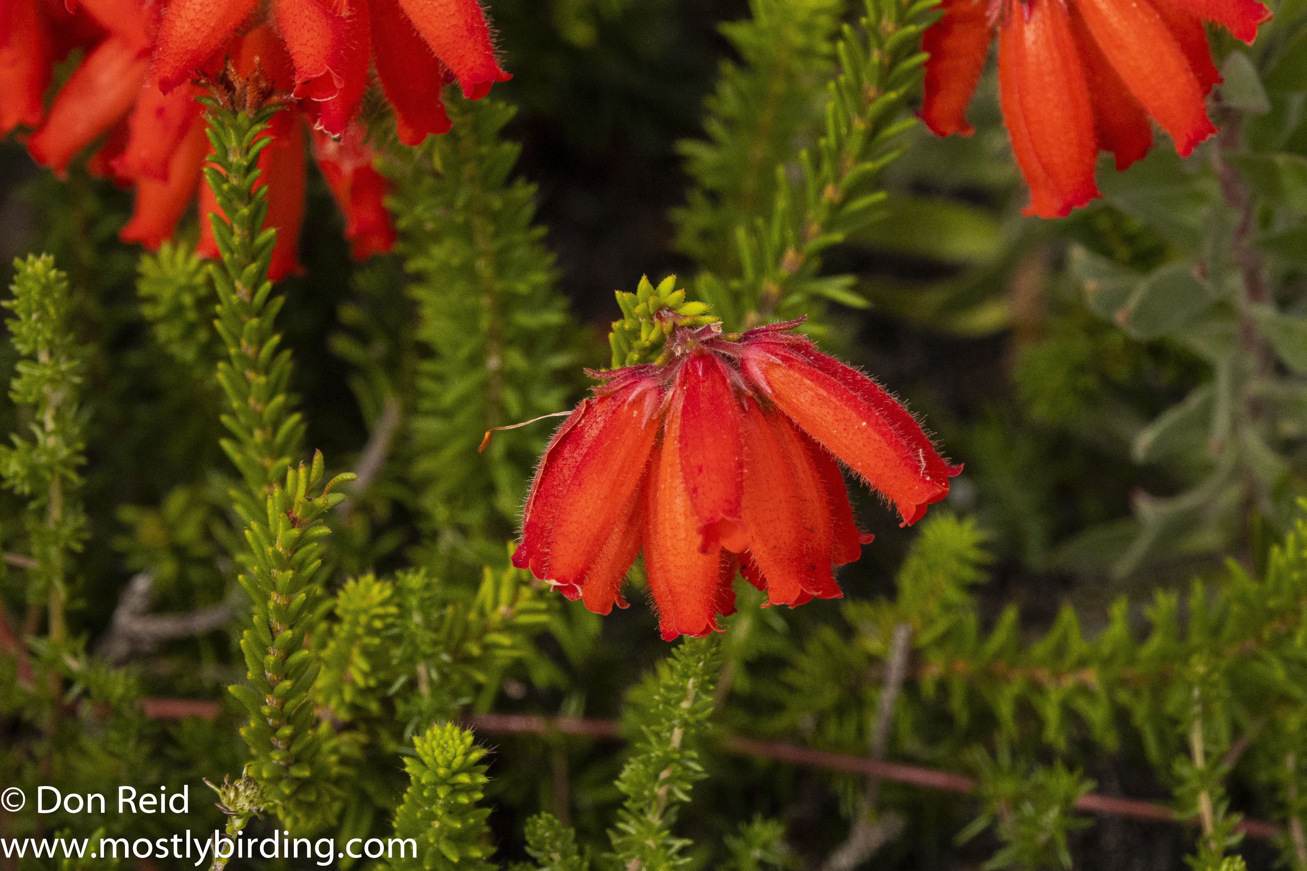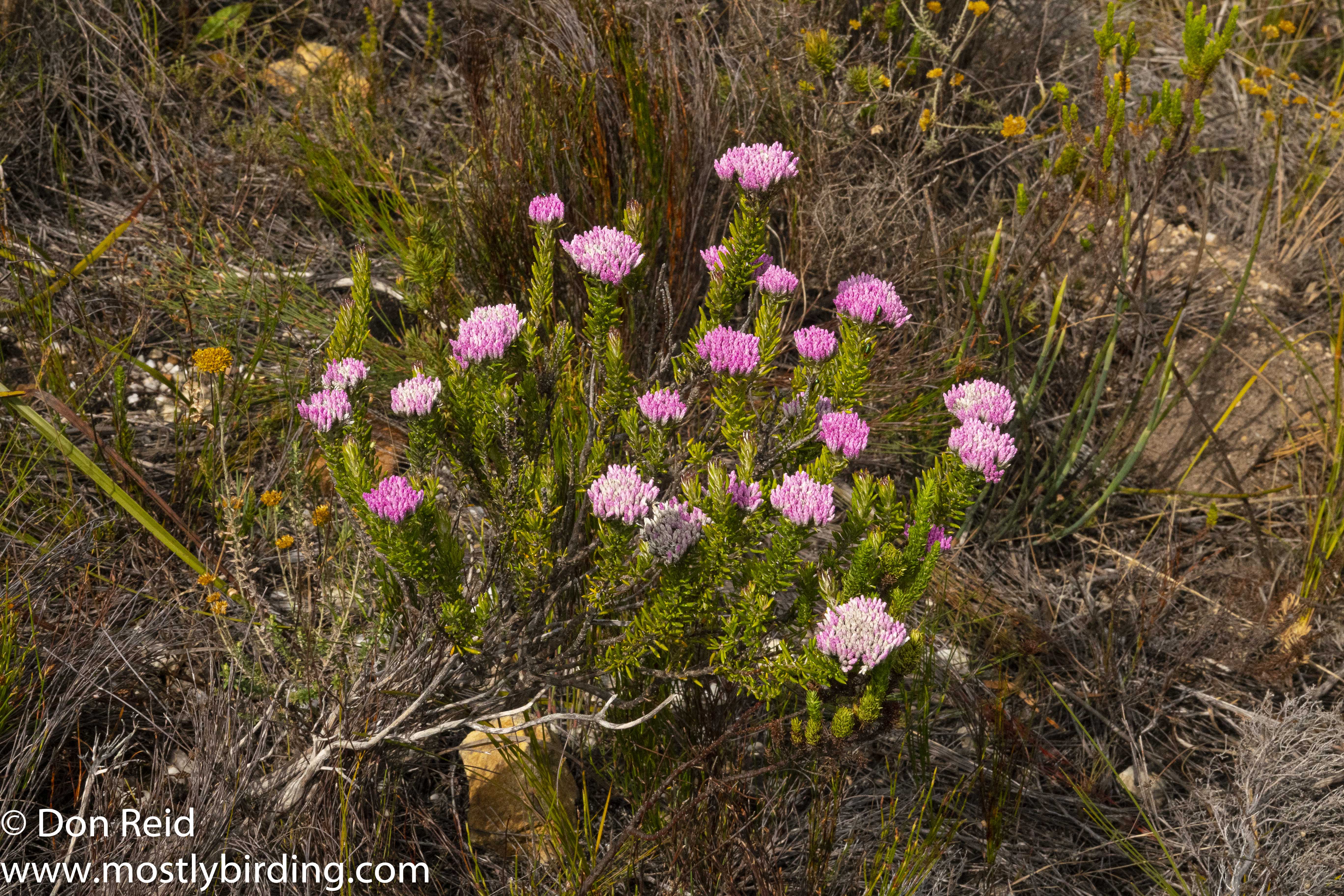 Hermanus is in the Cape Floristic Region and thus has one of the highest plant diversity levels in the world. The principal vegetation type of this region is Fynbos, a mixture of evergreen shrub-like plants with small firm leaves (Info courtesy of Wikipedia)