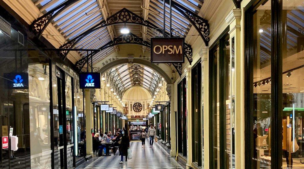On the way back to the hotel we followed a route which took us through two of the arcades that Melbourne is known for – beautifully restored wide passages between the surrounding buildings.