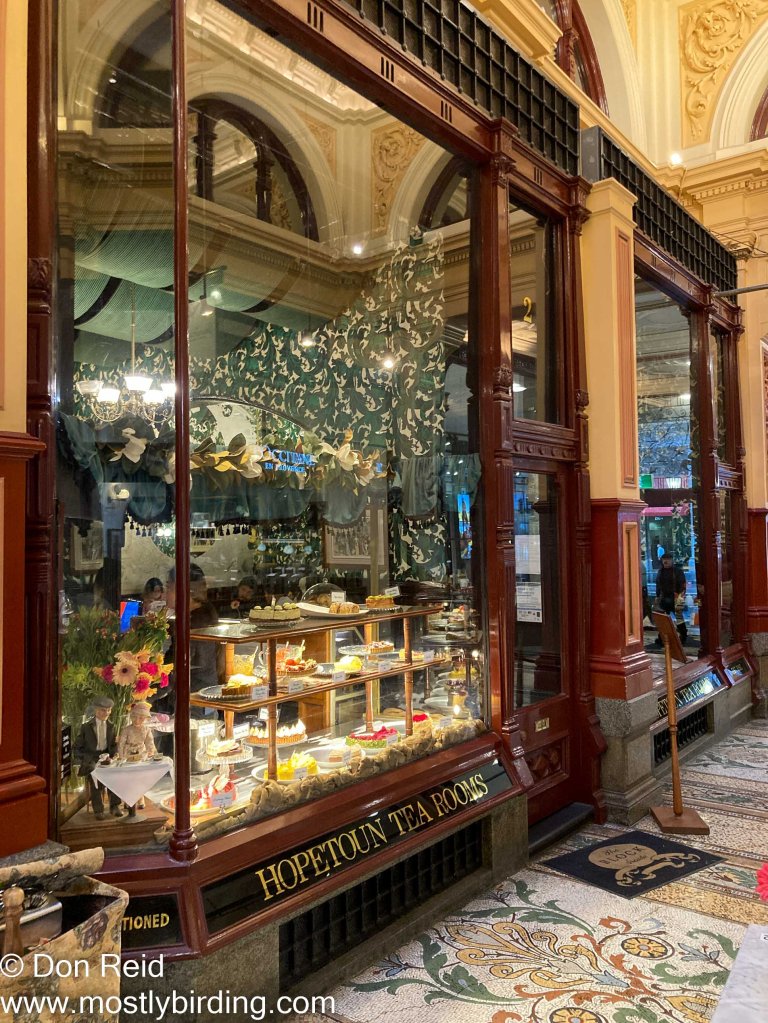 Later we ventured into the surrounding streets – destination the famous (among Aussies) Myer department store where we browsed the several levels (reminding me of Stuttafords from way back when in Cape Town) and ended up in the Brunetti restaurant for tea and a cake chosen from a long glass cabinet full of the biggest variety of tempting cakes that we’ve seen in a long time.