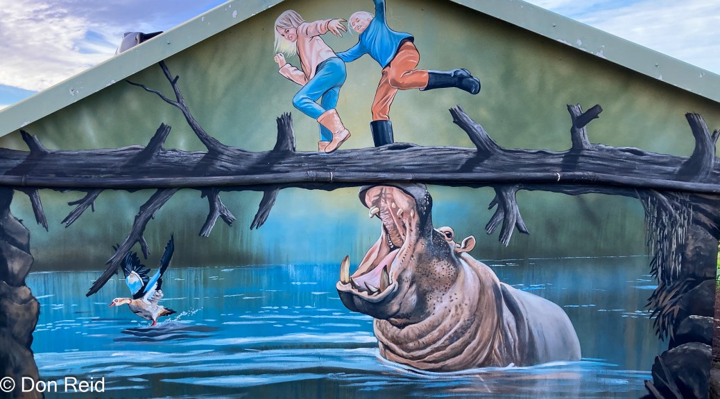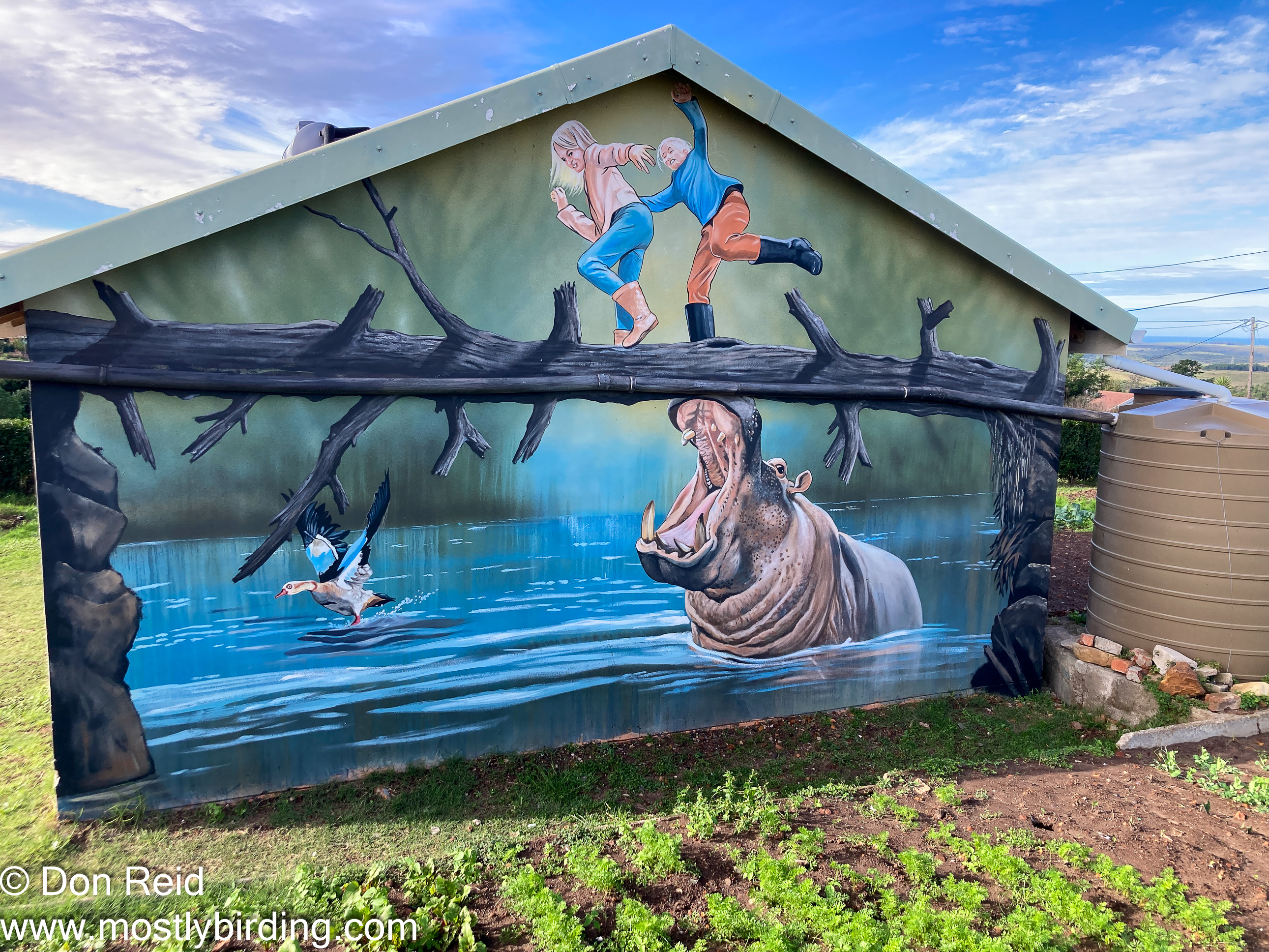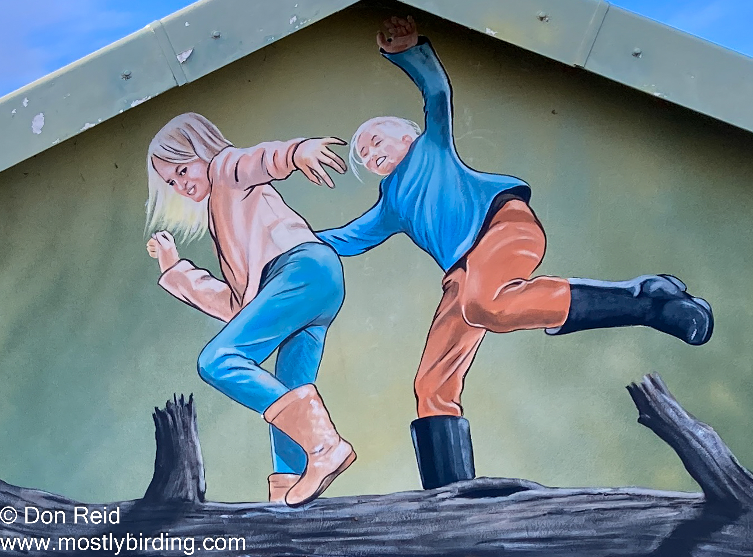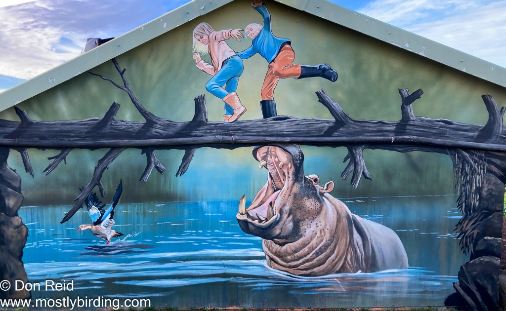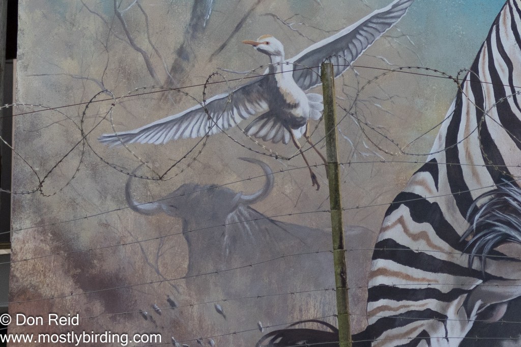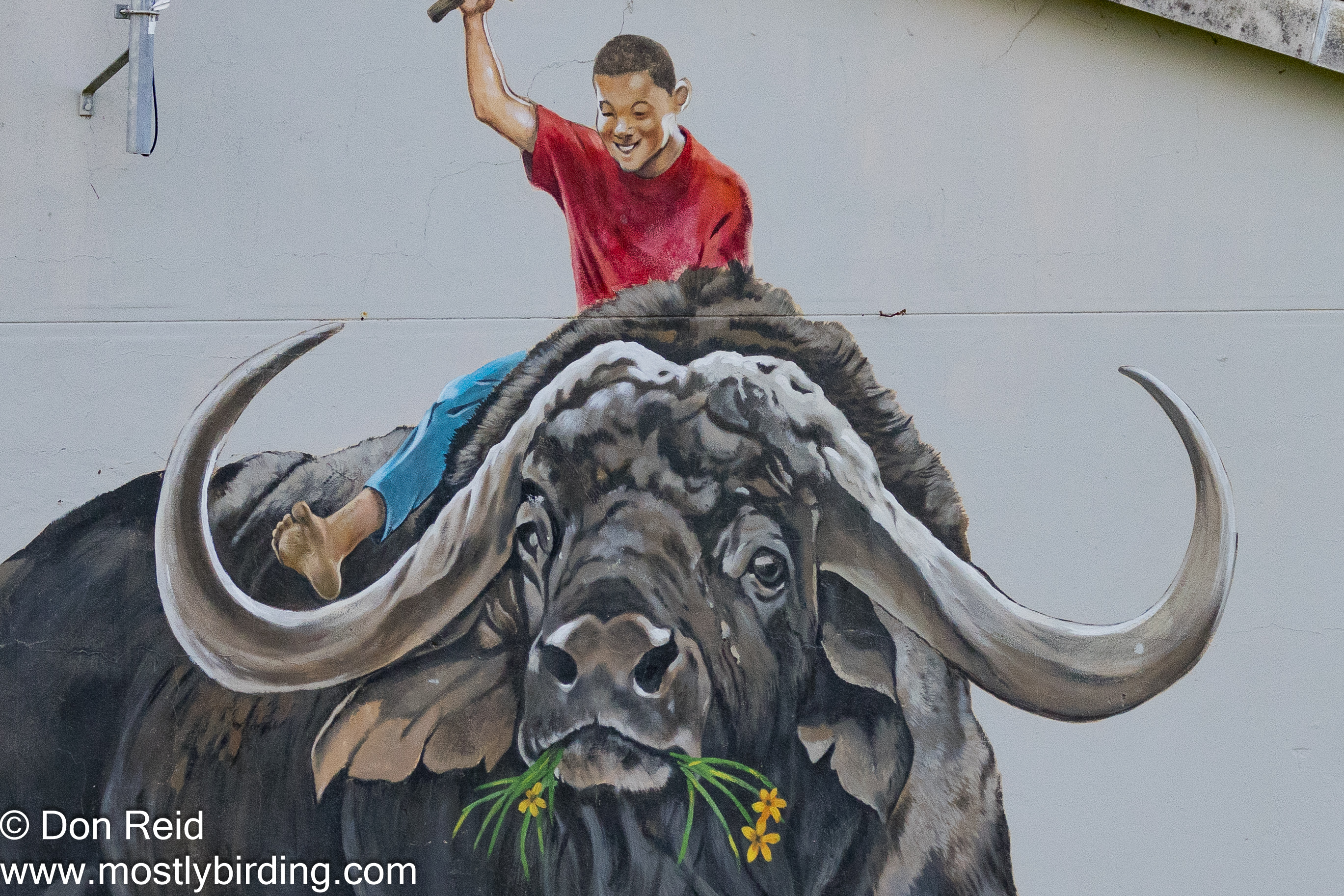 For some reason readers have been attracted to this post in far greater numbers – over a 1000 views so far – than any of my other 300 plus posts – a tad ironic when you consider the title of my blog is “Mostly Birding”, as this is the one post that has no birds mentioned other than those depicted in the murals!