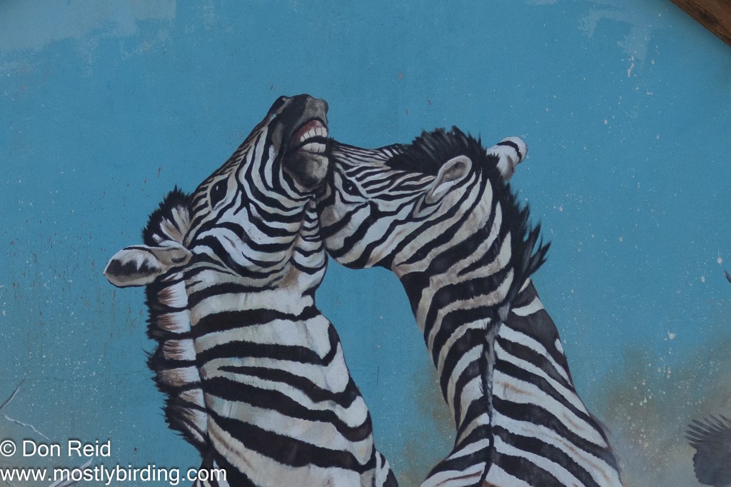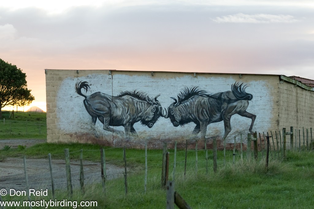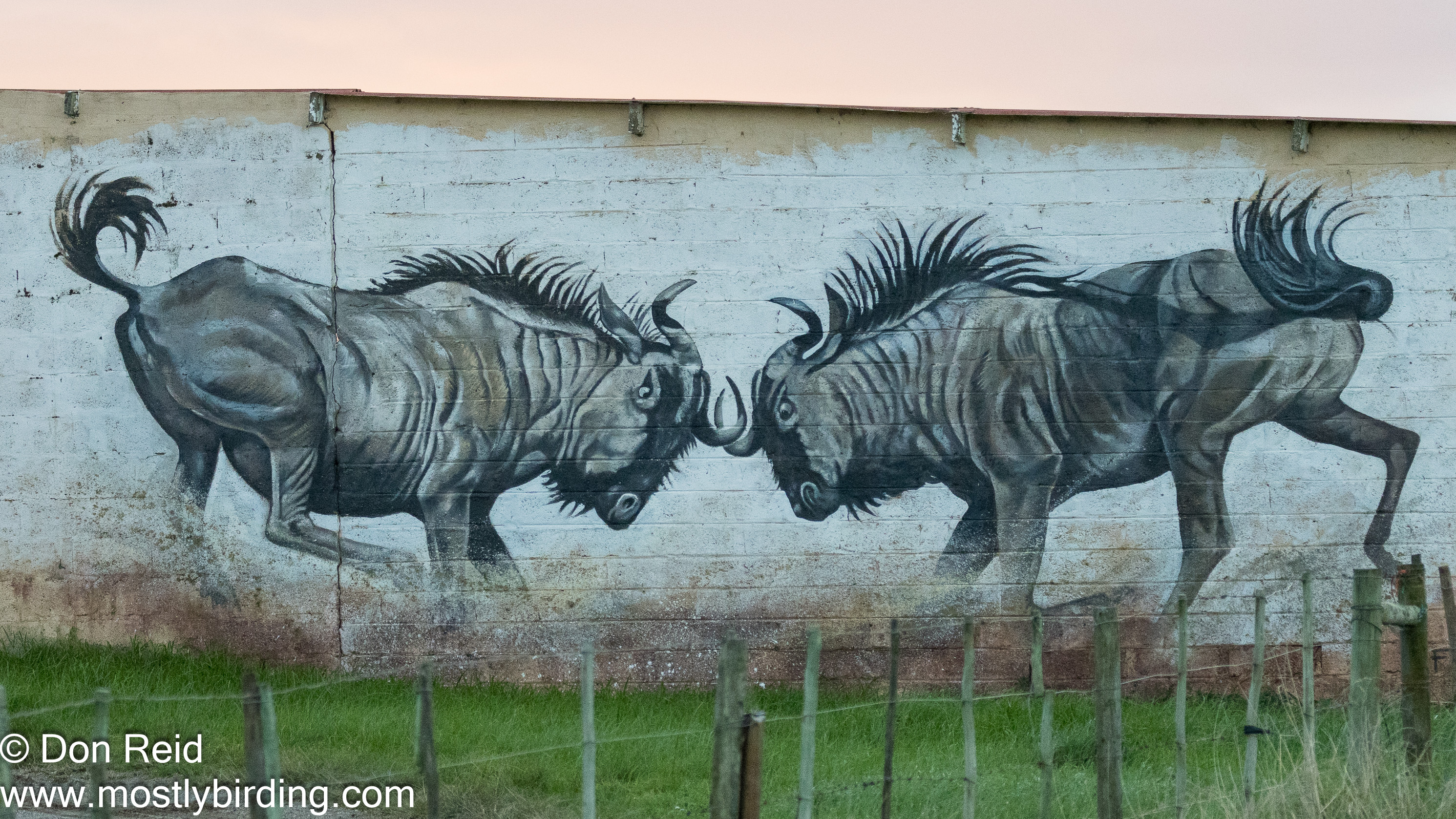 This mural on the wall of an outside room depicts another species fond of showing their superiority by challenging competitors – the Wildebeest