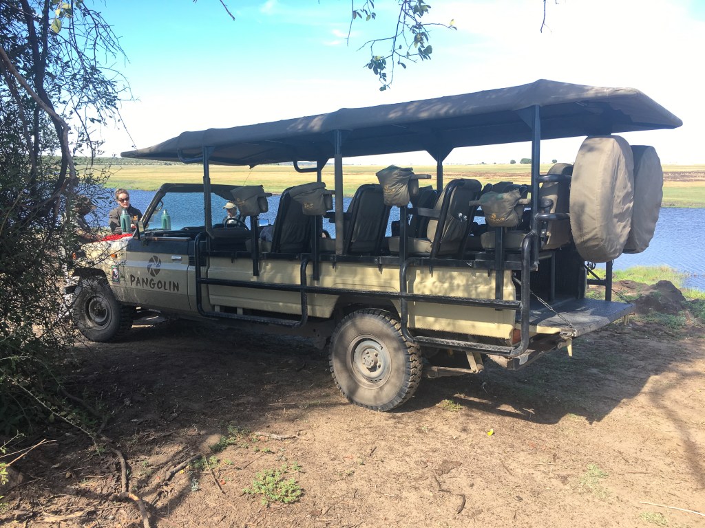 Janine collected me at 5am, drove to the Pangolin Lodge, newly built and overlooking the flood plains of Chobe, picked up the other couple and off we went. The early start was a good idea as we were well ahead of the other game drive vehicles, a crucial advantage which paid off in spades – as you will see…