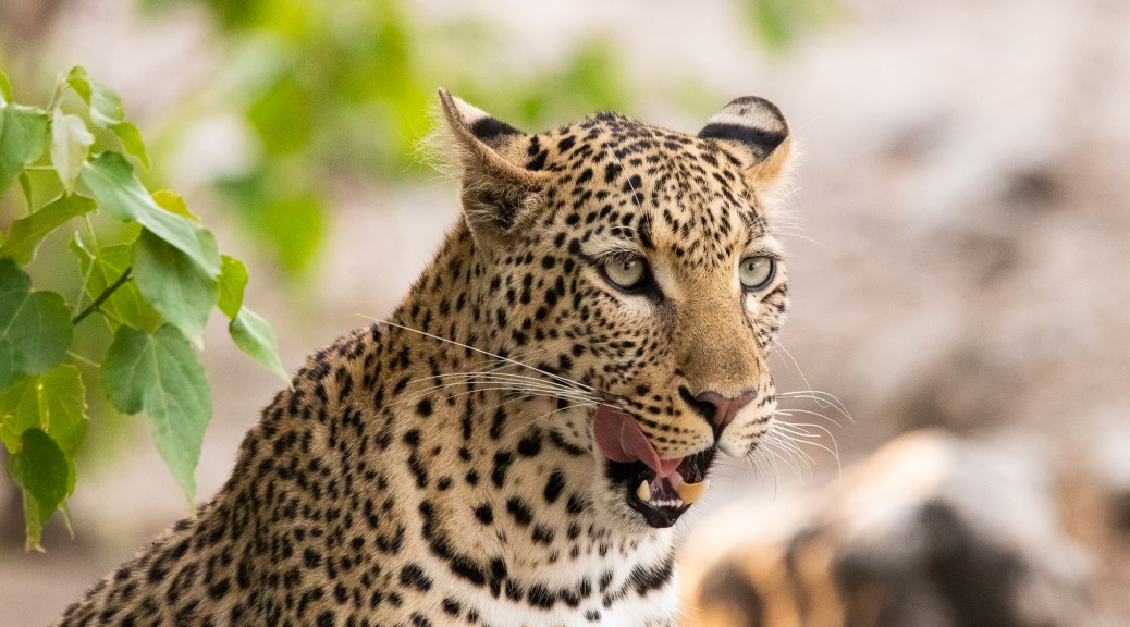 And that’s what she did, moving behind a bushy tree to her right, where we could just make out the Impala kill which she proceeded to drag a little, then lick and eventually chew with some satisfaction.