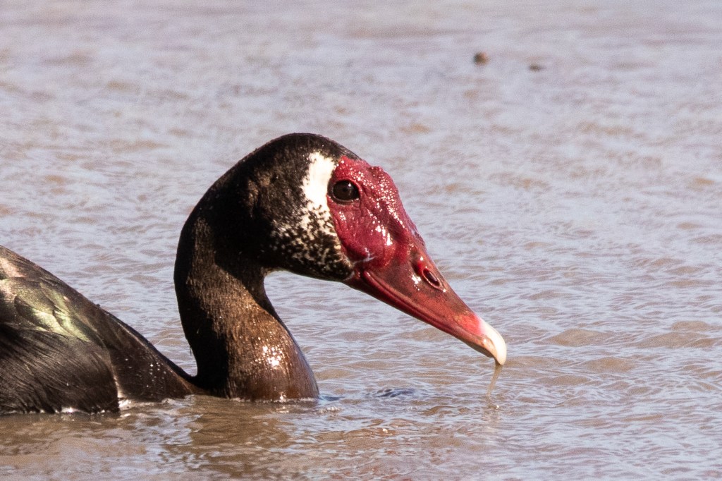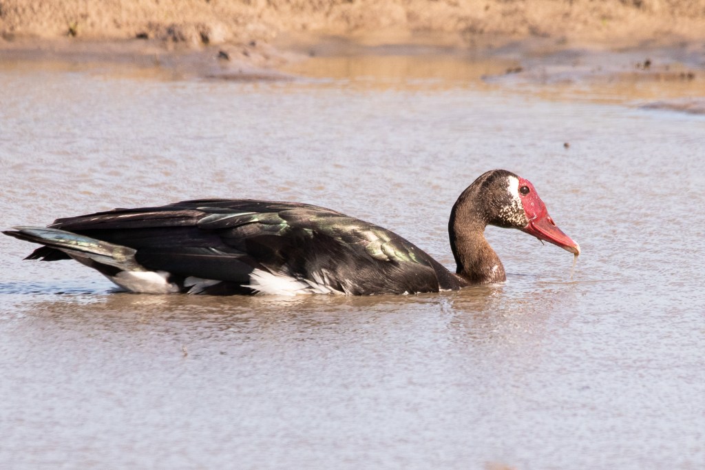 Spur-winged Geese are often seen in the distance, but this one gave us close up views as it swam along the river’s edge