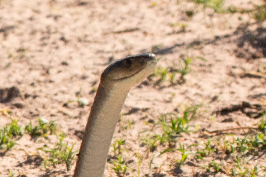 It was of course a large Black Mamba, most feared of snakes, and it was already raised about 1 metre high and looking mean.