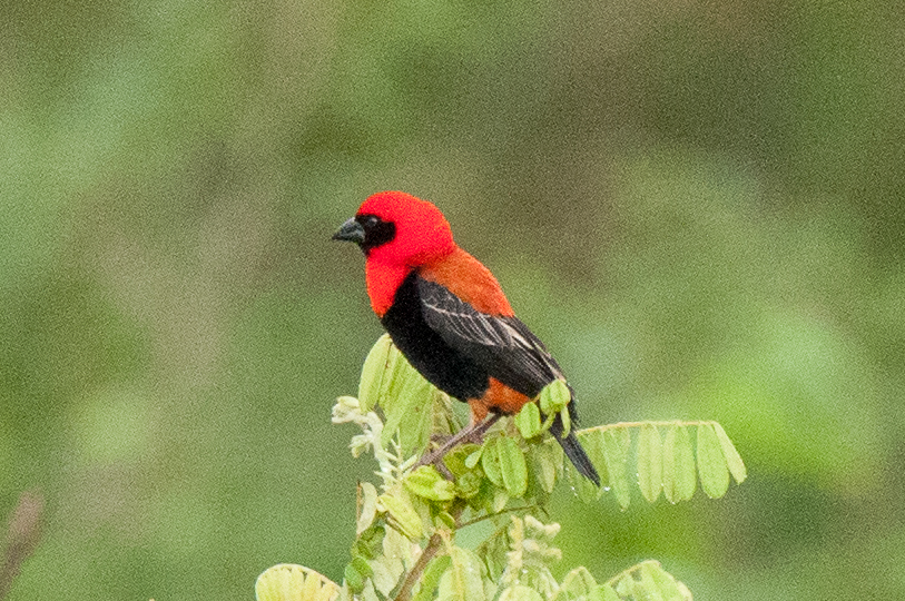 - Black-winged Red Bishop (the old name of Fire-crowned Bishop still suits it better)