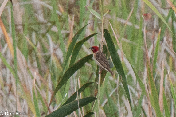- At a bridge over a reed-lined river, which produced a number of Red-headed Quelea, first for the trip and a lifer for a few of us (me included). Close by a Yellow-throated Longclaw was calling loudly, seeming to be indignant about our presence