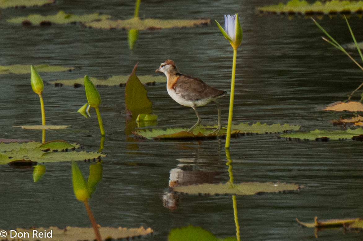 By now it was late morning and, drained by the heat, we made our way slowly back to the guest house, stopping at a known Lesser Seedcracker spot but with no luck. After a “lunch and relax” break we set out for the Rio Maria area where Etienne showed us a small dam with some interesting bird life present, such as Pygmy Goose, Malachite Kingfisher and a lone but exciting Lesser Jacana.