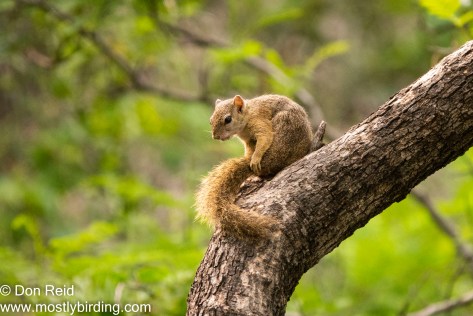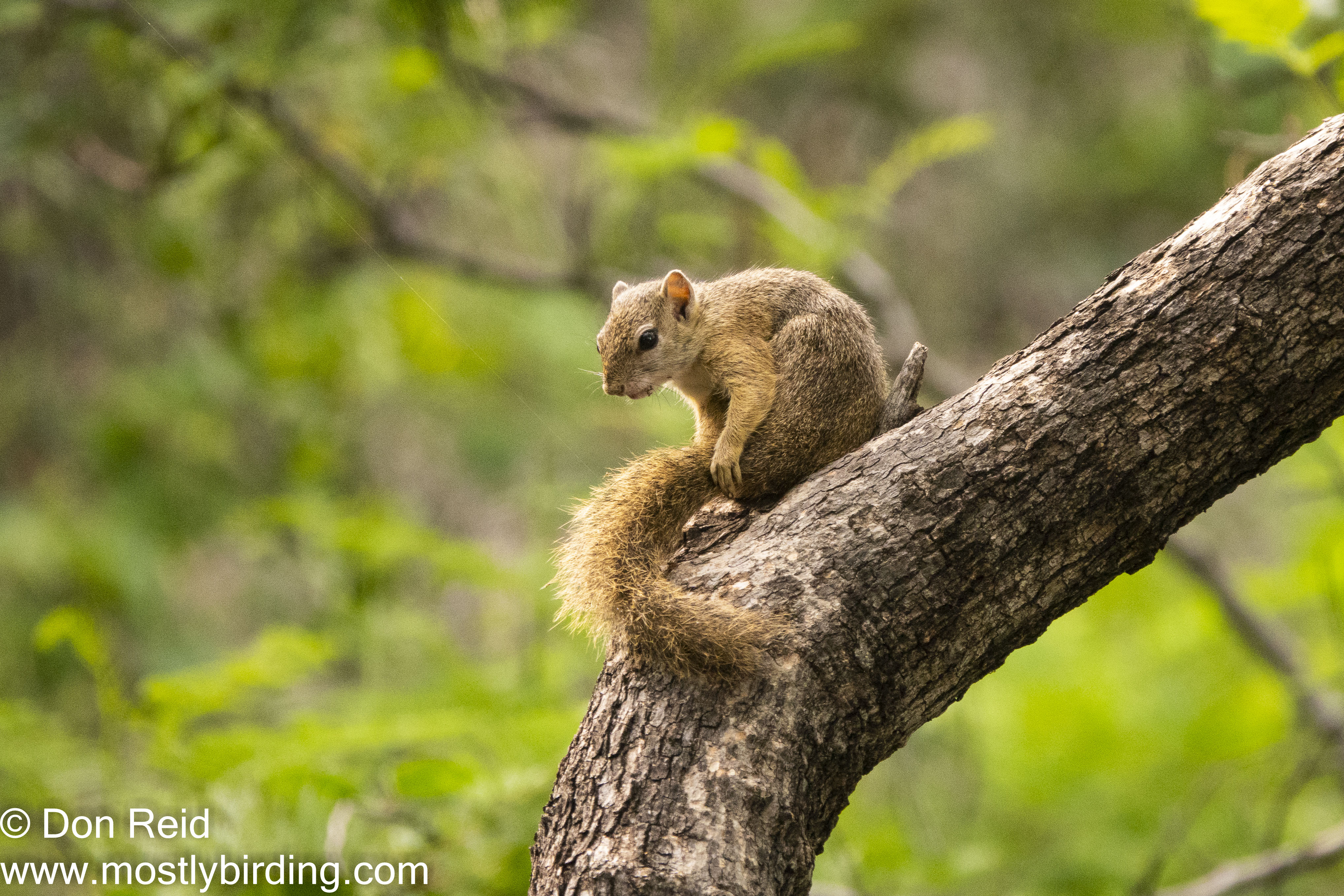 The familiar Speckled Mousebird is fond of disappearing into foliage but will usually pop up to check out the surroundings, which is what this one did