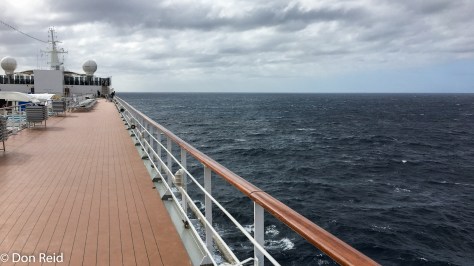 The wind had come up strongly, which made for interesting, slightly drunken walks down those long passages, a challenging shower experience and a night of being bounced gently in our bed as the Sinfonia battled against 80 km/h winds and high swells – thank goodness for stabilizers!