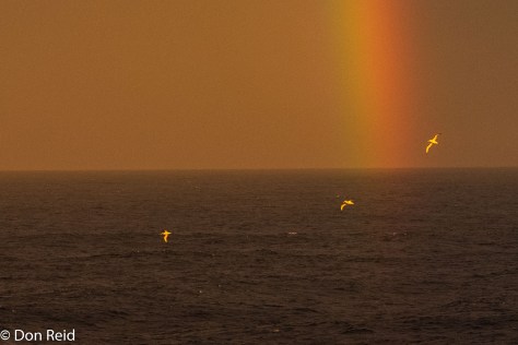 The stream continued steadily for more than an hour during which time a few hundred Albatrosses, Gannets, Petrels, Shearwaters and Storm Petrels passed from bow to stern, many doing an airborne pirouette and a pas de deux before going on their way – apart from the thrill of the lifers on Day One, this was for me the absolute birding highlight of the trip. Just a pity all the Birdlife guides were attending the AGM, so there was no one to confirm the ID of some of the trickier birds that passed by, including some Storm Petrels in the distance.