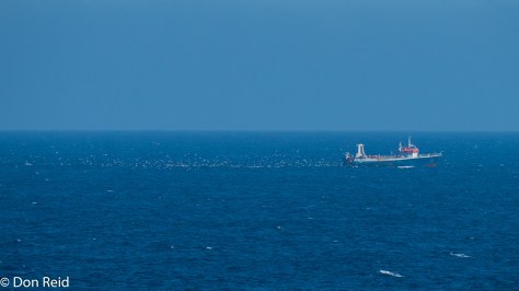 This was followed by lunch where after we headed to our cabin for a bit of a break from all the activity……….. not for long, as I glanced through the cabin window and noticed an Albatross passing by, then another…. and another. So I grabbed my gear and headed to deck seven starboard to find a continuous stream of seabirds passing by – my guess was that they were heading towards the trawler we had seen earlier, “towing” in its wake a flock of many hundreds of birds.