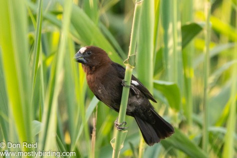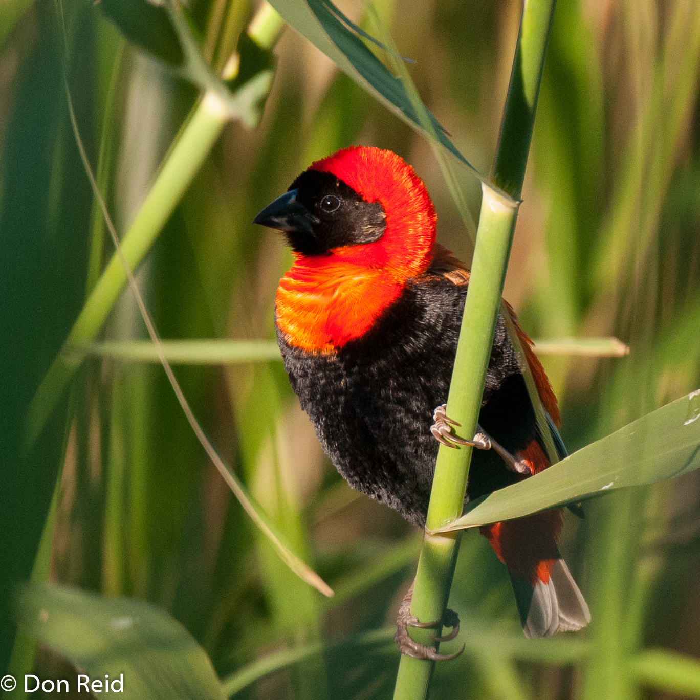 Thick-billed Weaver revealed by torchlight in the reeds at the Glades dam (Glades photos were taken a few days earlier in daylight)