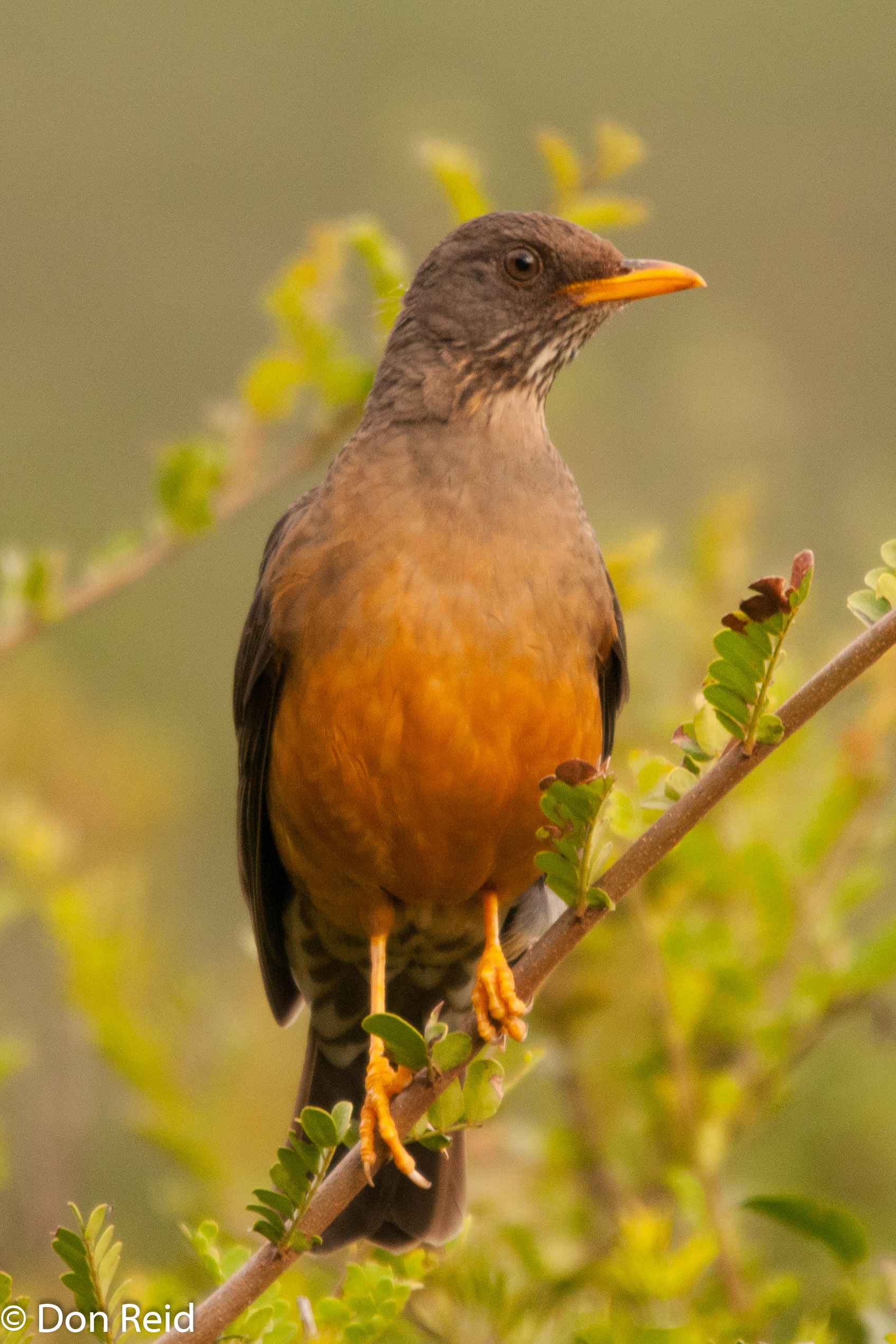 The light was fading fast as we headed up a hill past a block of flats with lush gardens – as we stopped to listen, a Kurrichane Thrush appeared in the lower branches of a tree – 200 up !!!