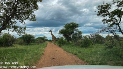 We did not encounter many animals but a Giraffe was good enough to cross the road ahead of us and as a bonus had some Red-billed Oxpeckers in attendance