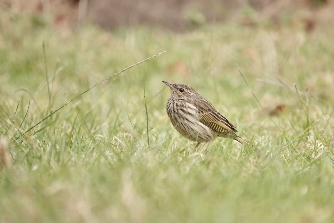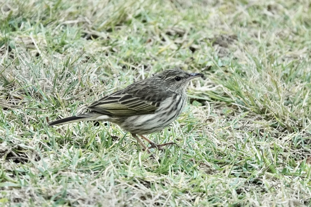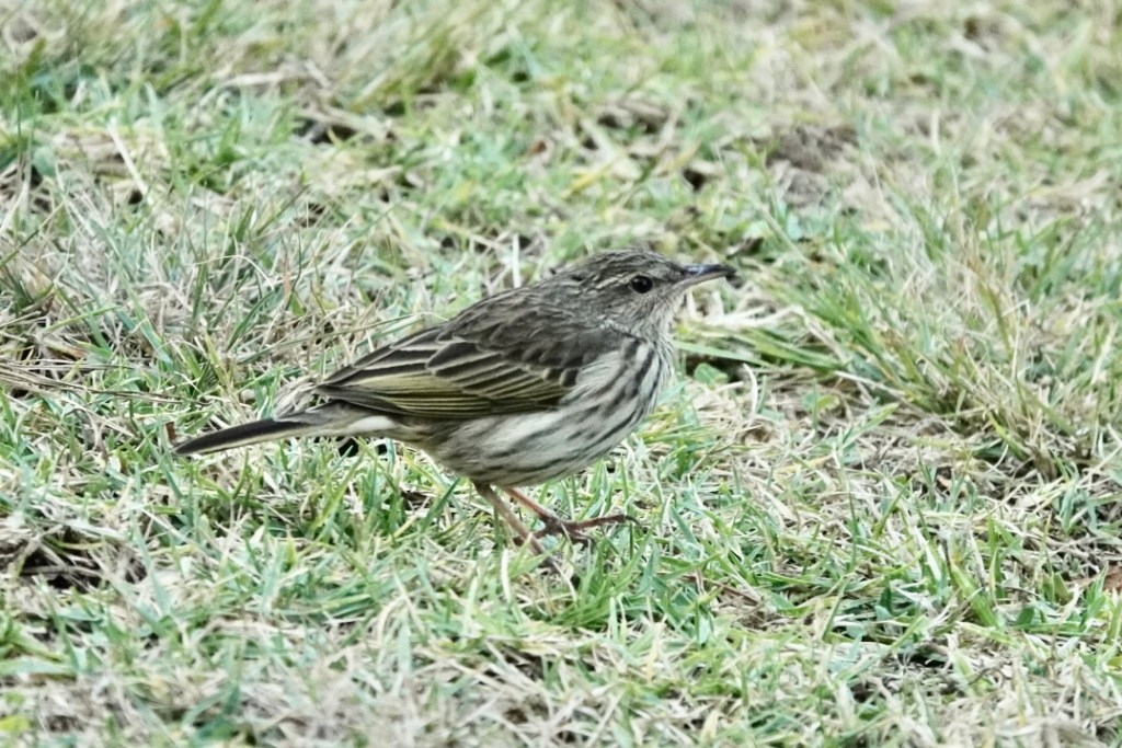 The Buff-breasted Sandpiper was quickly pointed out by those already present – on its own foraging in the dry, lightly grassed area away from the water – clearly a loner not interested in mingling with the many other waders in the vlei itself.
