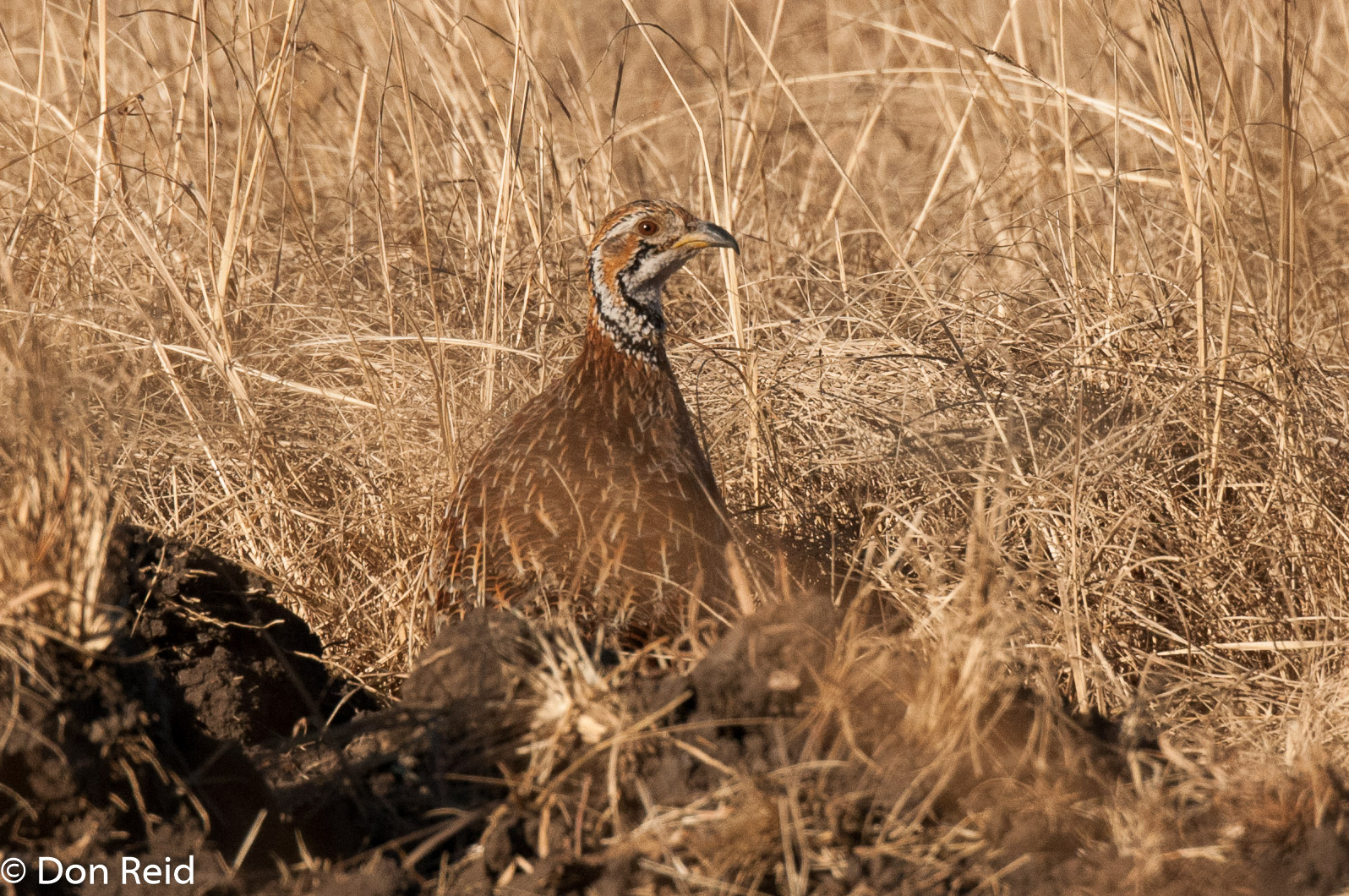 After much lively discussion and some input on my part (as the only regular atlasser in our team), we did eventually find the pentad boundary, but the map versus co-ordinates debate continued unabated, also due to non-existent roads being shown on the map. The area we found ourselves in was single habitat – Mopane bush with no pans or any other water, so atlasing was slow and quite laborious in the heat of the day and we were relieved when we had completed the minimum 2 hours of atlasing and could head back to the camp. On the way back a Coqui Francolin surprised us as he crossed the road in front of our vehicle.