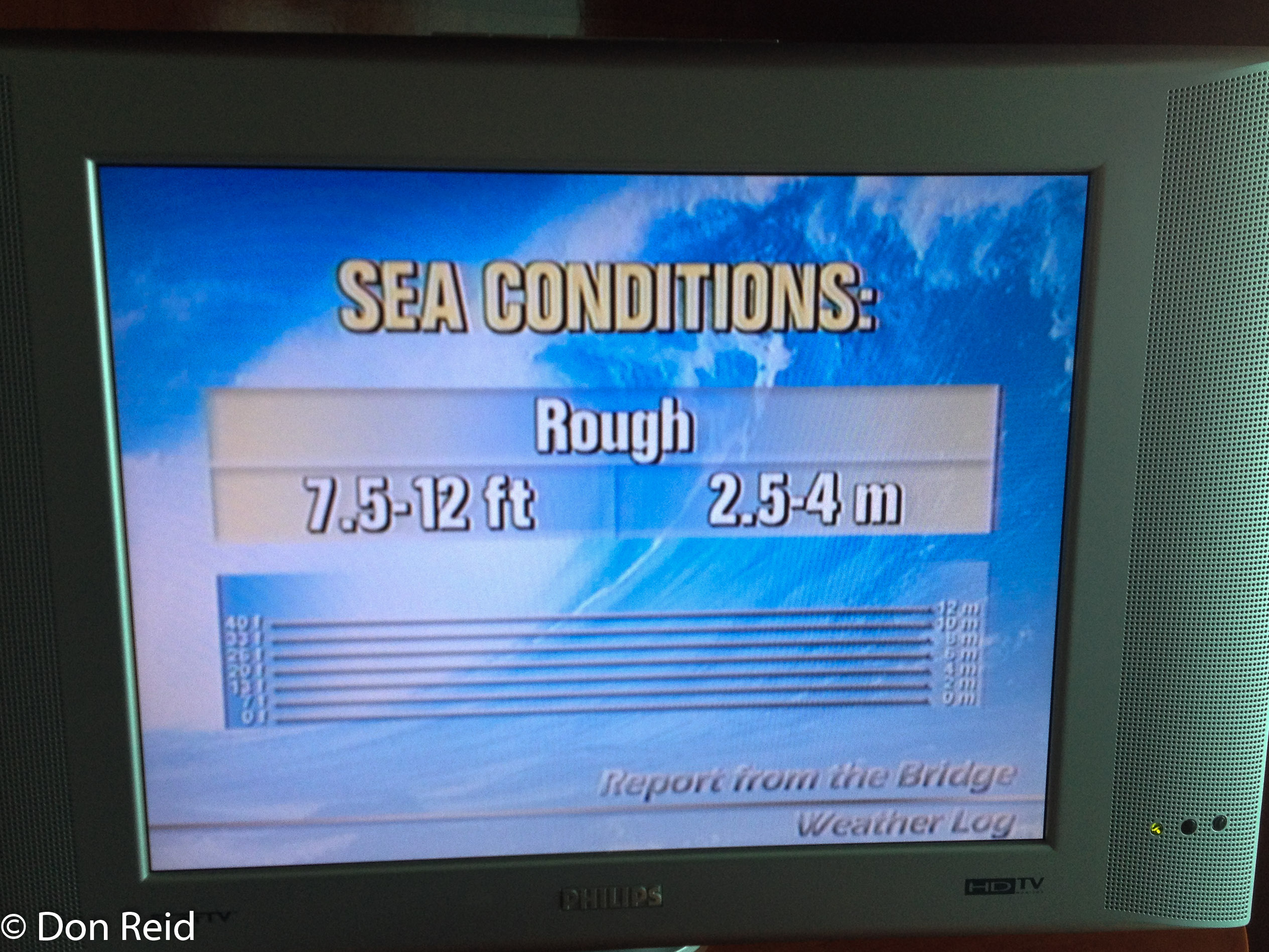 Boarding a large cruise ship with a couple of thousand others from around the world was bound to be an experience, but it went off really smoothly and before we knew it we were being photographed (for later collection of a souvenir photo) and guided on board, up to the 9th level and to our stateroom (no “cabins” on this ship) on the port side. Our stateroom No 9572 was pretty much like a compact hotel room, with a bathroom which would not be out of place in a caravan (cue John Denner : “It’s a Trailer – what is it with you Africans!”), nevertheless very comfortable with a large bed, small sitting area inside, kitted out with a tea/coffee maker, and a small balcony outside. This was to be our home for the next week and we relished the prospect of relaxing and enjoying it to the full.