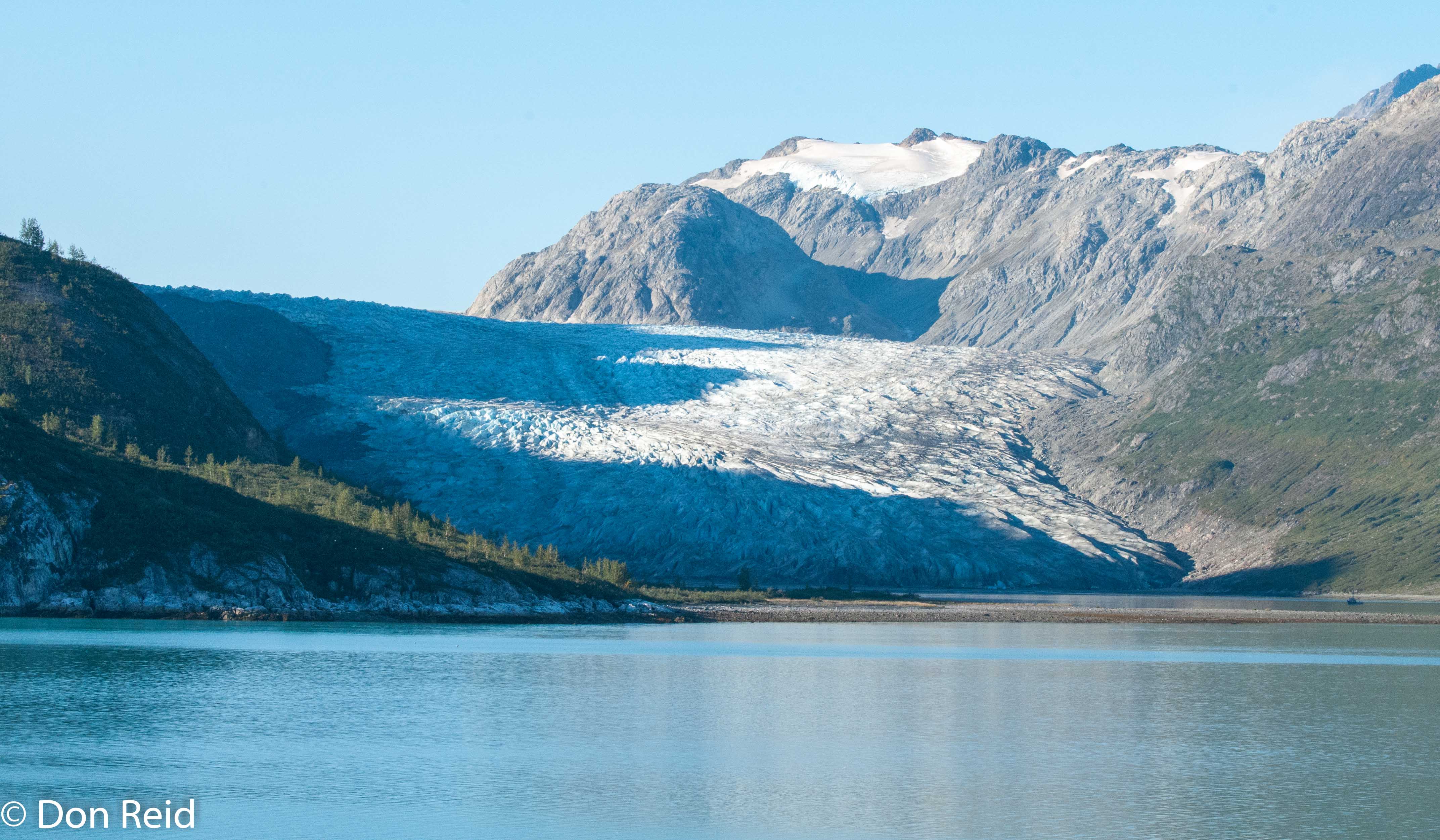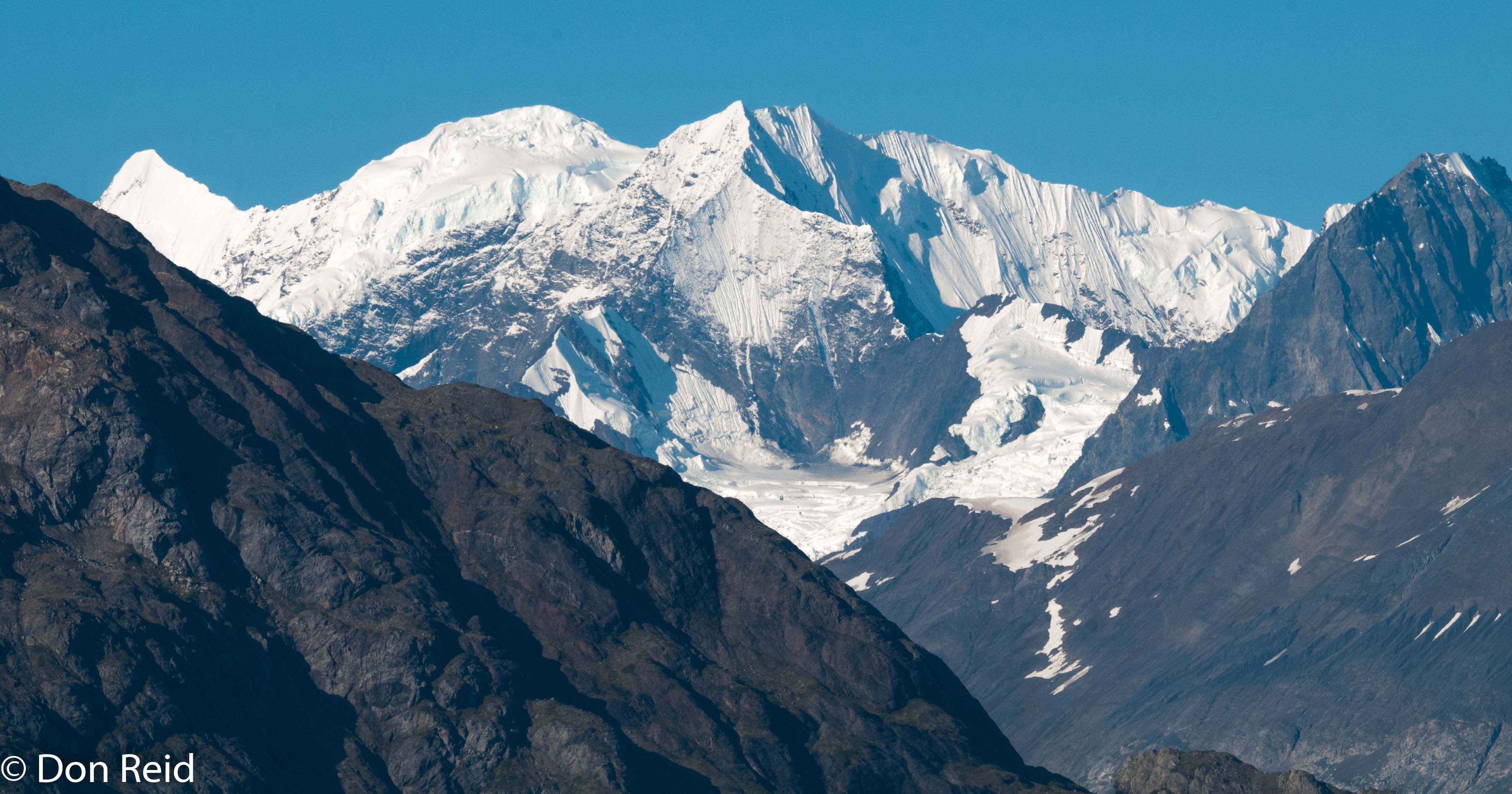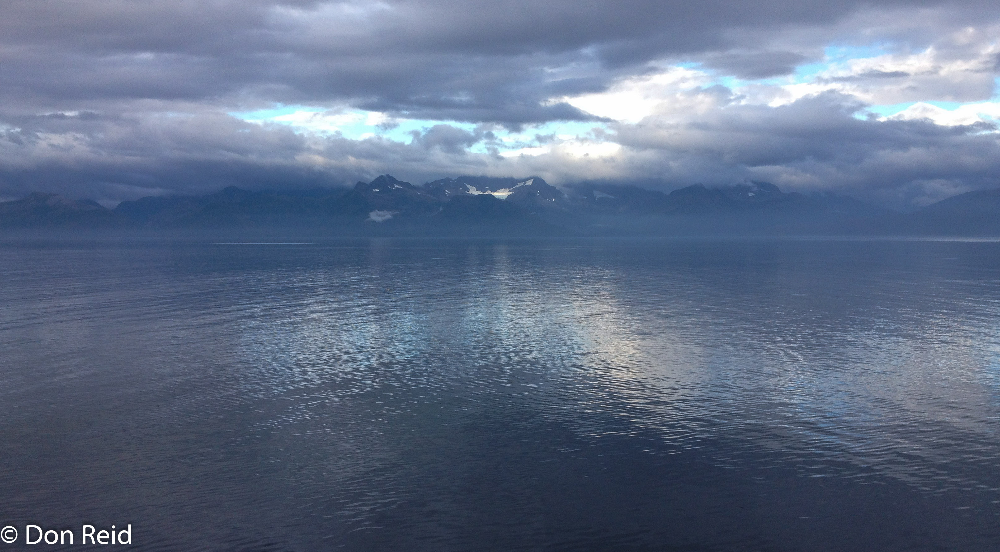 After yesterday’s ‘rock and roll’ seas, we awoke to a magical scene of calm waters and a backdrop of glacier-capped mountains in shades of blue, green and white. The skies were filled with fluffy white clouds, the blue gaps allowing splashes of sunlight to fall on the mountains.
