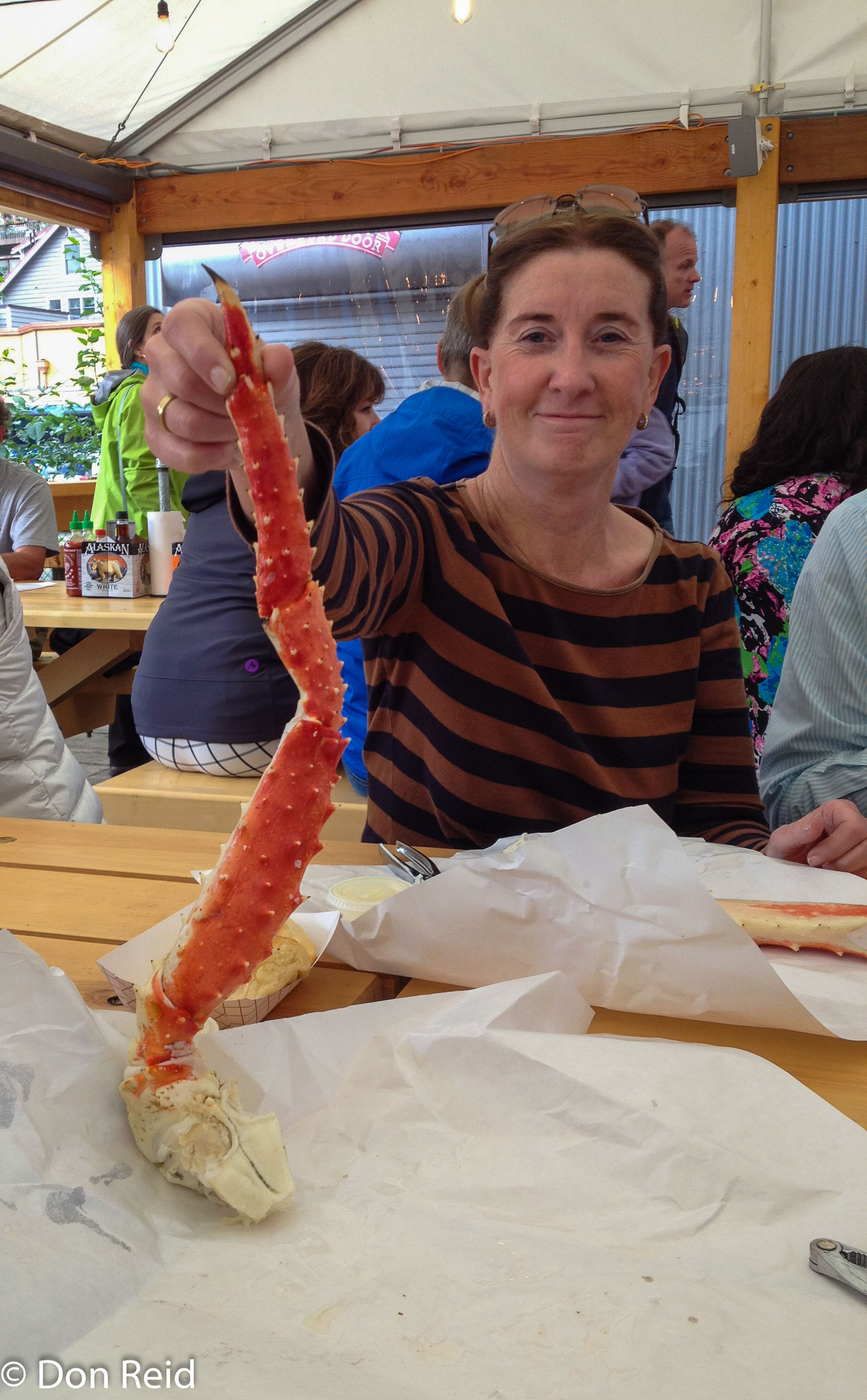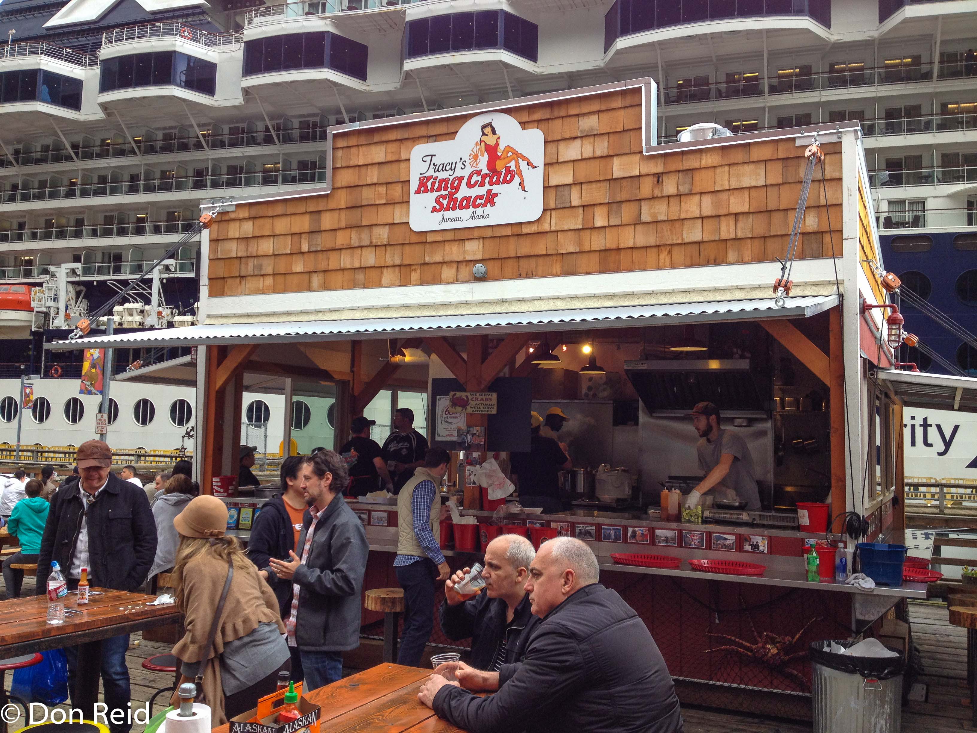 When we were all done with our various pursuits, we found a nice coffee shop and late afternoon we made our way back to the ship, but not before stopping at the “Crab Shack” which we had seen earlier and which had been recommended as a ‘must try’ by my sister Sheila (Sam). It turned out to be a spot on suggestion when we tasted the sensational Giant Alaskan crab legs – just two of them cost $50 but were so good we forgot the heavy (for us currency-disadvantaged Sefricans) price. A Ukraine family next to us got through about $300 worth and were in 7th heaven.