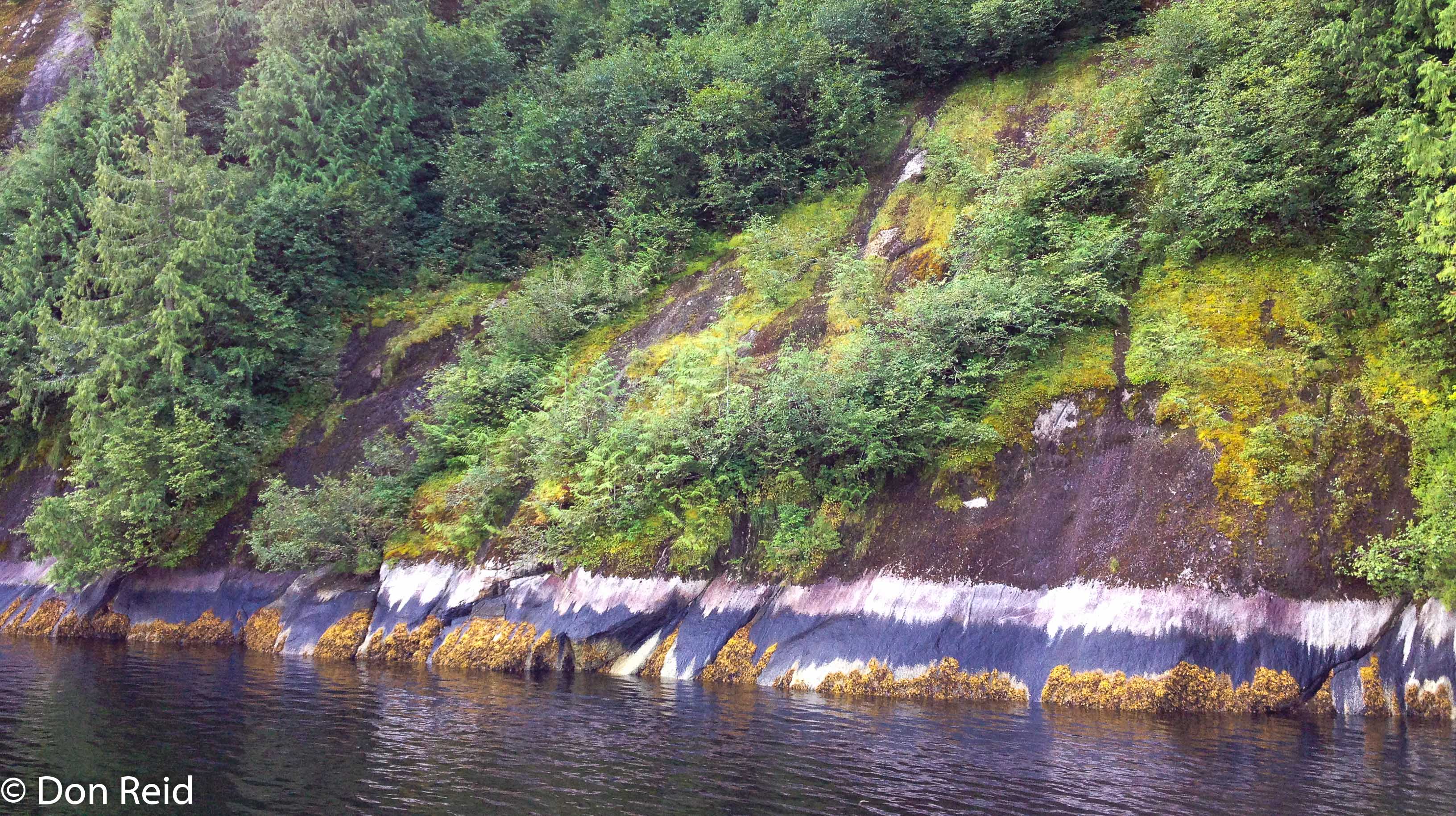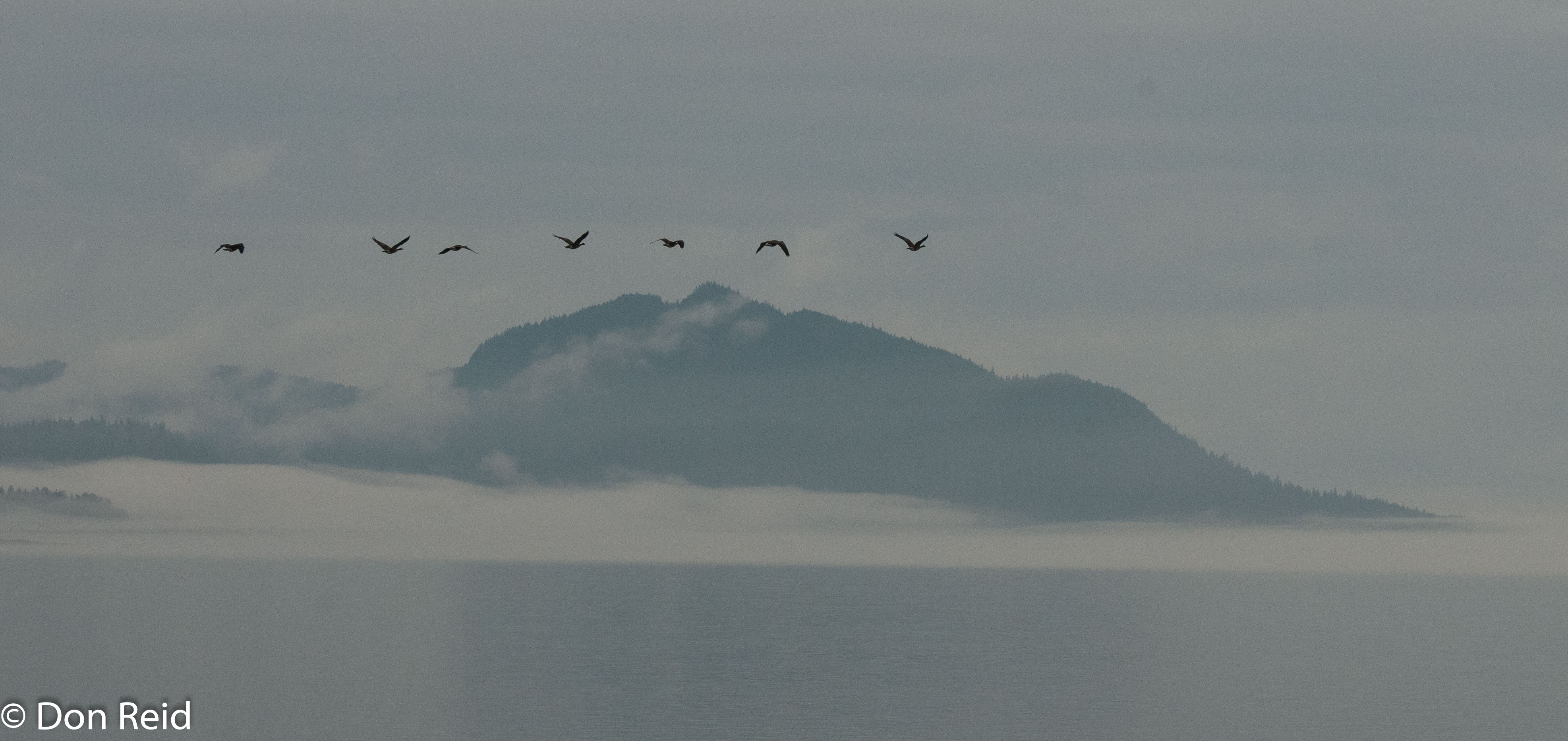 As we progressed along Frederick Sound, the largest body of water in the Inside Passage, Pacific Humpback Whales appeared, blowing and displaying their graceful tails. The sea’s surface was mirror-like at best, goose-bumped at worst – speaking of which, a skein of Canada Geese flew by in formation as the ship glided along.