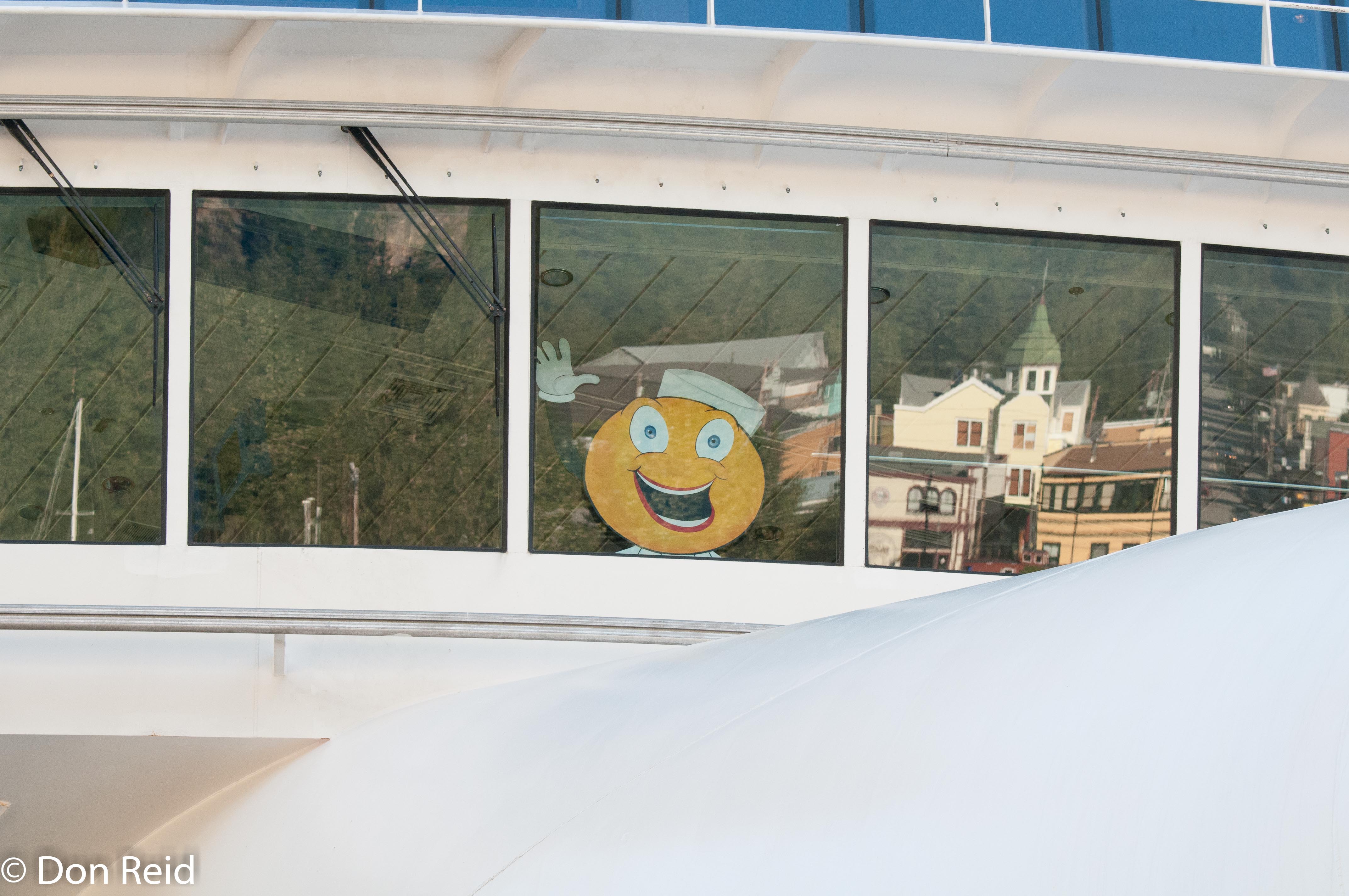 The ship left Seattle precisely on time in perfect sunny weather, which changed later in the afternoon to heavy mist, blotting out the view altogether, but the sea was very calm and we just glided along – it probably helps to be amidships where our stateroom was located, as any motion is not as pronounced.