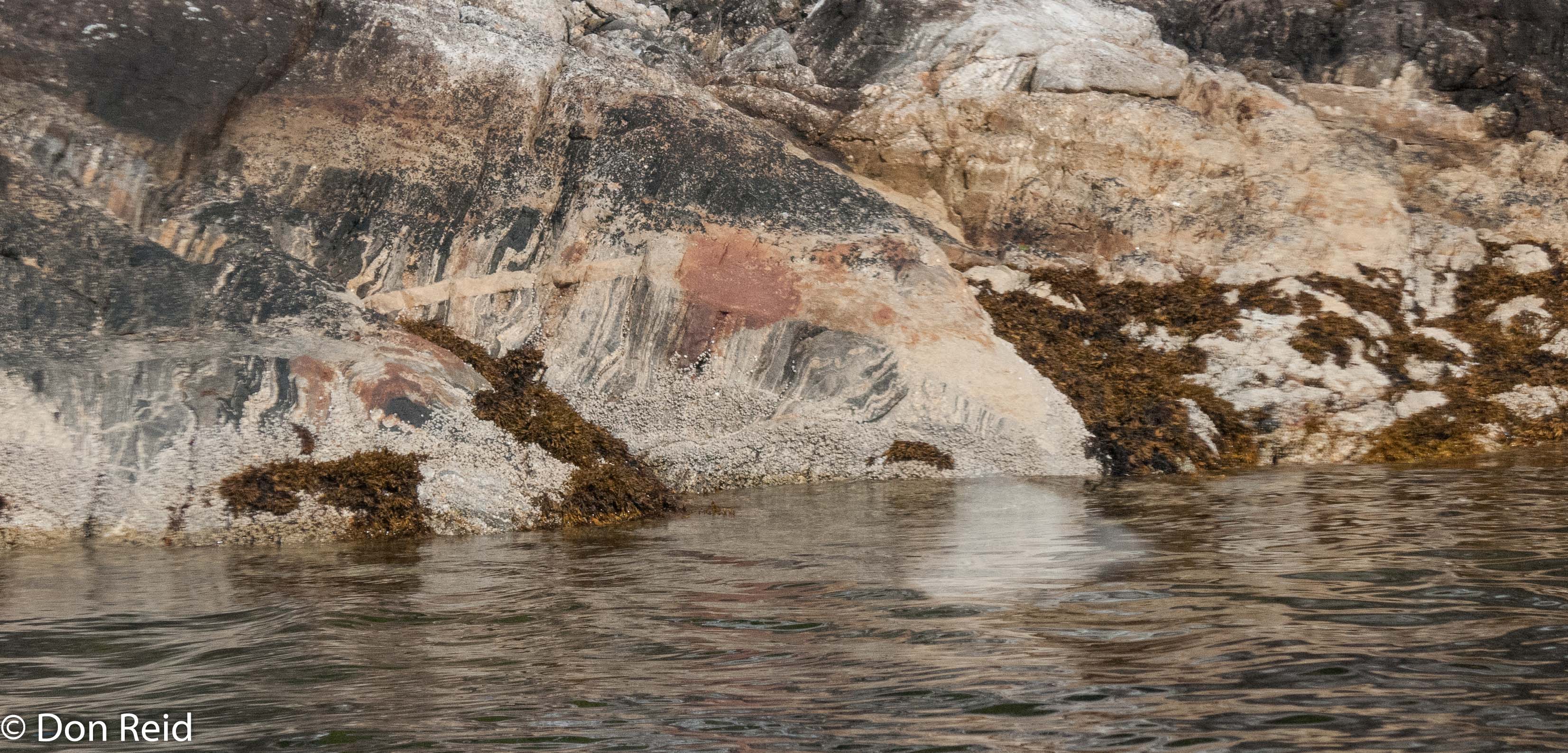 Between breakfast and lunch, we whiled the time away and I was on the lookout for any birds, as usual – I soon spotted some small black birds on the water, swimming away as the ship’s wake caught up with them. It was difficult to get a fix on them with my binoculars with the ship travelling at some 20 knots and the birds moving away, so I grabbed my camera with long lens attached and rattled off a few photos. To my surprise and delight they turned out to be Tufted Puffins, thus fulfilling a long-held dream of seeing a Puffin – in fact over 50 years since I read about them in a “Famous Five” Enid Blyton book in my primary school years, long before I became interested in birding.