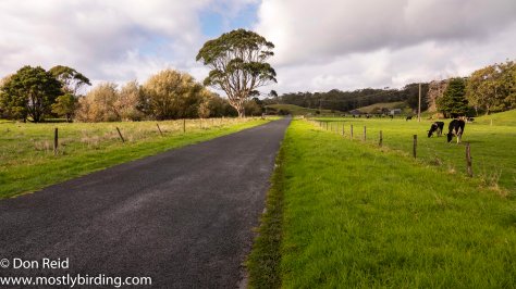 After breakfast, with the rain letting up, we drove through the village – I soon spotted a sign pointing the way to “Scenic Route” and headed along the indicated road into attractive countryside with green fields, plenty of picturesque cattle and the odd river – all adding up to a totally idyllic scene – whoever had decided to call it a scenic route knew what they were about (in fact that’s something we noticed frequently – Aussies do seem to know what they’re doing)