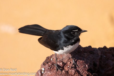 I was fascinated by the cutely named Willie Wagtail which popped up briefly, a perky bird elegantly coloured black and white and with a broad tail that he wagged vigorously, but from side to side rather than the up and down of other wagtails.