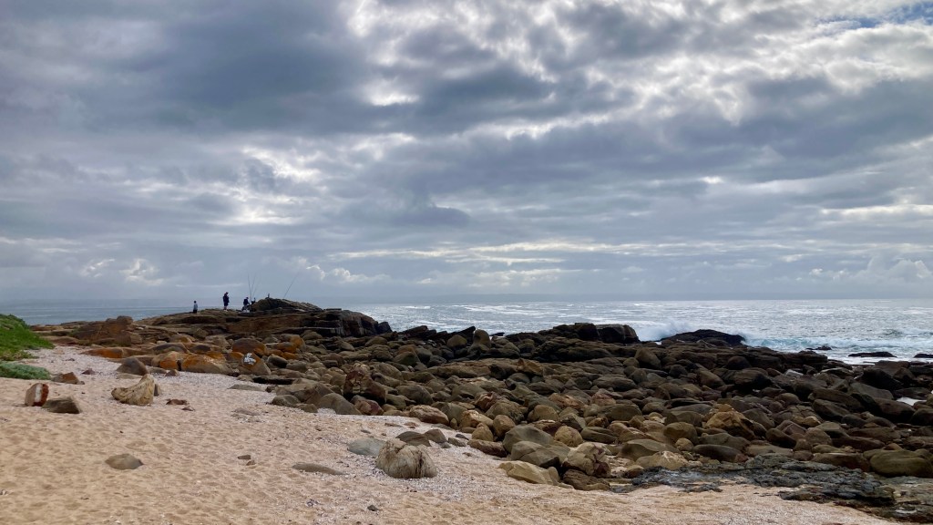 The rain subsided a bit later, so I took a walk along the beach with a light drizzle in the air and the wind still gusting quite strongly – that helped to blow all the day’s driving-induced cobwebs clear away.