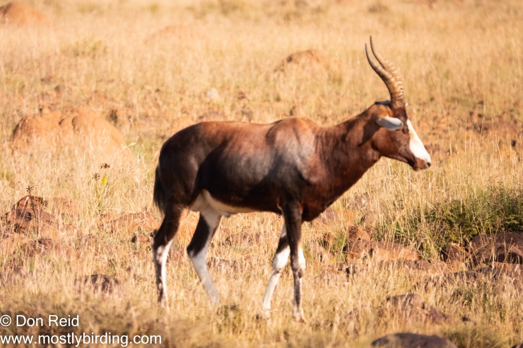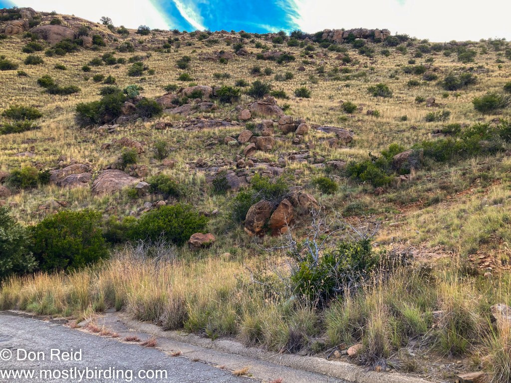 We were into perfect habitat for what I thought it was – rocky hillsides with large boulders – and after a quick scan I found it on one of the boulders – African Rock Pipit!