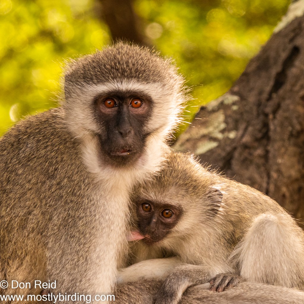 A short way further on we came across a group of Vervet Monkeys including a mother and youngster who posed like pros in the lovely shaded light – I am always drawn to their eyes which look so bright and intelligent.