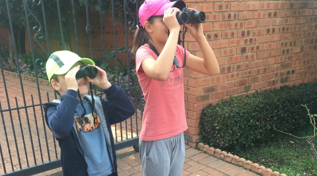 Another way to learn to identify birds by their calls is to put a verse to the call if you can, as in the Red-chested Cuckoo with its distinctive “Piet My Vrou” call. You’ll hardly ever see this bird – but you’ll hear him calling all the time in summer – even at night! How about the Grey Go-Away-Bird (Lourie) – shouting at you or your cat to “Go Awaaaay!”? Feel free to make up your own verses to calls!