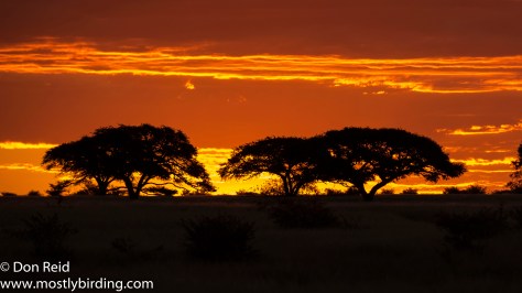 After a brief stop at the farm house, occupied for the week by a group of hunters, we headed back to the main road, but hadn’t gone far when Piet pointed out what looked like a distant cloud of smoke stretching across the horizon. He stopped and we got out to have a better look and realised immediately that this was not smoke of course, but a huge flock of Queleas, visible against the rapidly darkening skyline, moving like a giant serpent across the horizon.